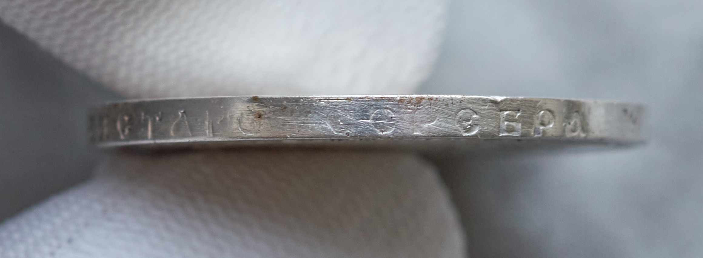 Думается что подделка, при шикарном рельефе, слишком большая потеря в весе, гурт спецом затрат, т. к. мастер понял свою фуфловость, кривизну букав🤗