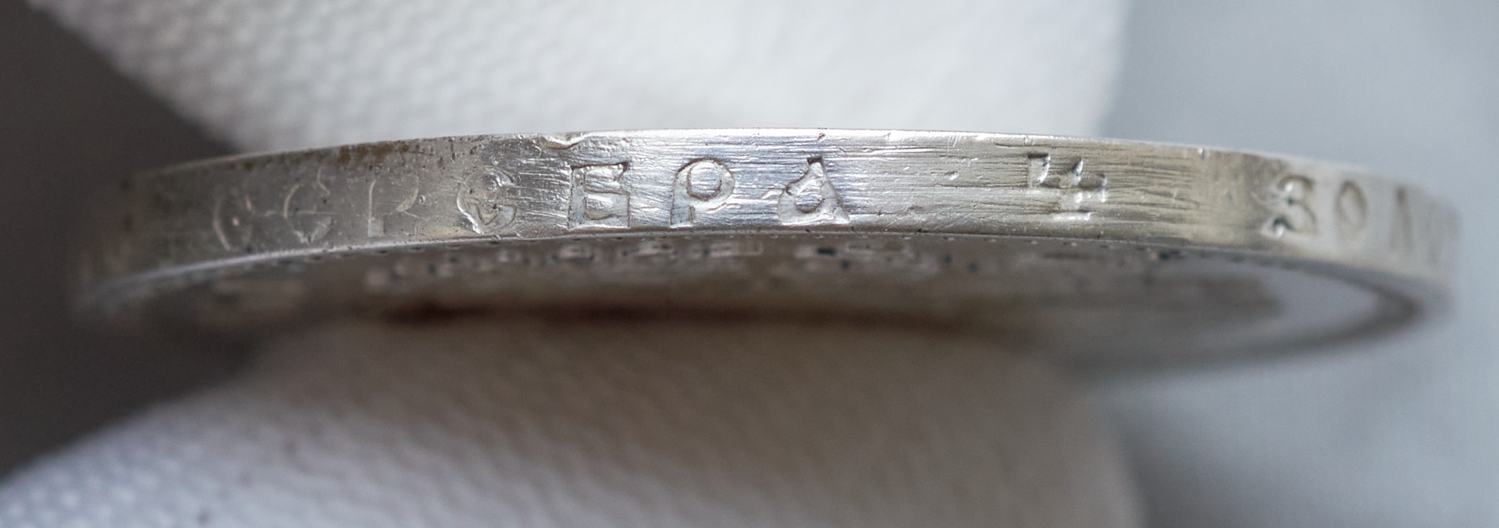 Монета оригинальная! С варварской зачисткой гурта. Если данную монету считать копией, то нужно иметь фотографии подобных поддельных экземпляров, отчеканенных теми же поддельными штемпелями. Если это литьё, то где клоны? Ничего нет! Никаких доказательств, что это фуфло. Это оригинал.