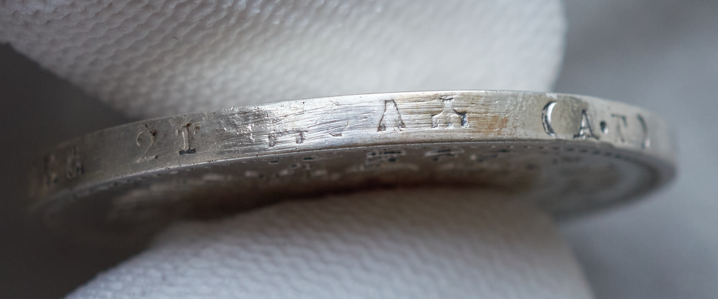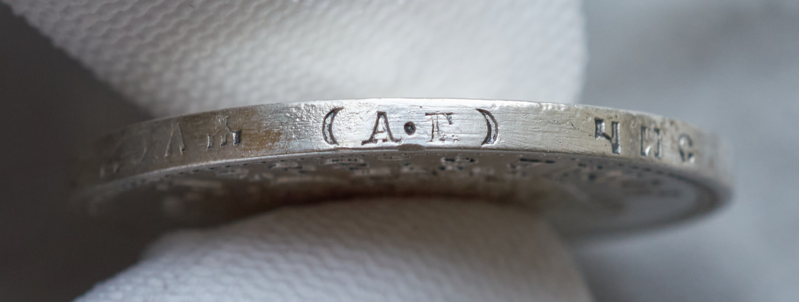 Думаю, что копия - центровка фиговая - по кайме с орнаментом видно. +Полосы на гурте - это характерный след кустарного нанесения надписи на копиях, шрифт типично неглубокий. Но герб исполнен неплохо!