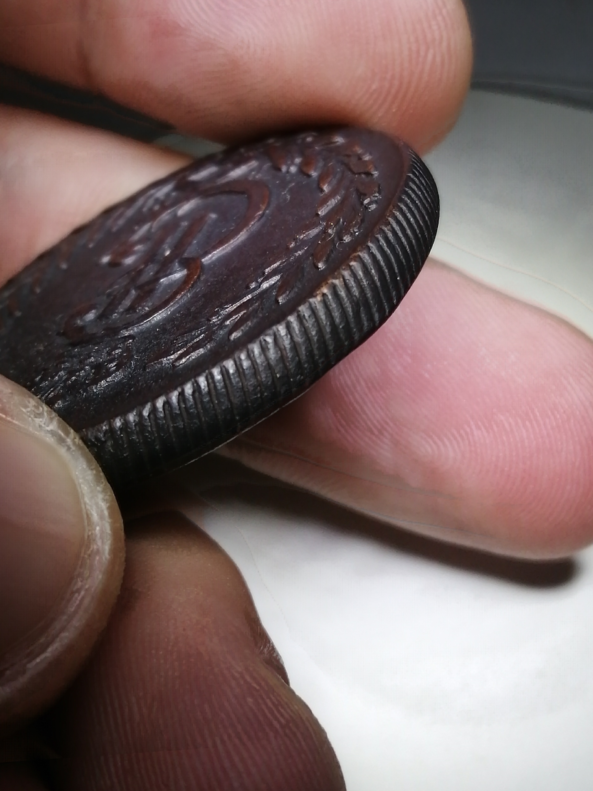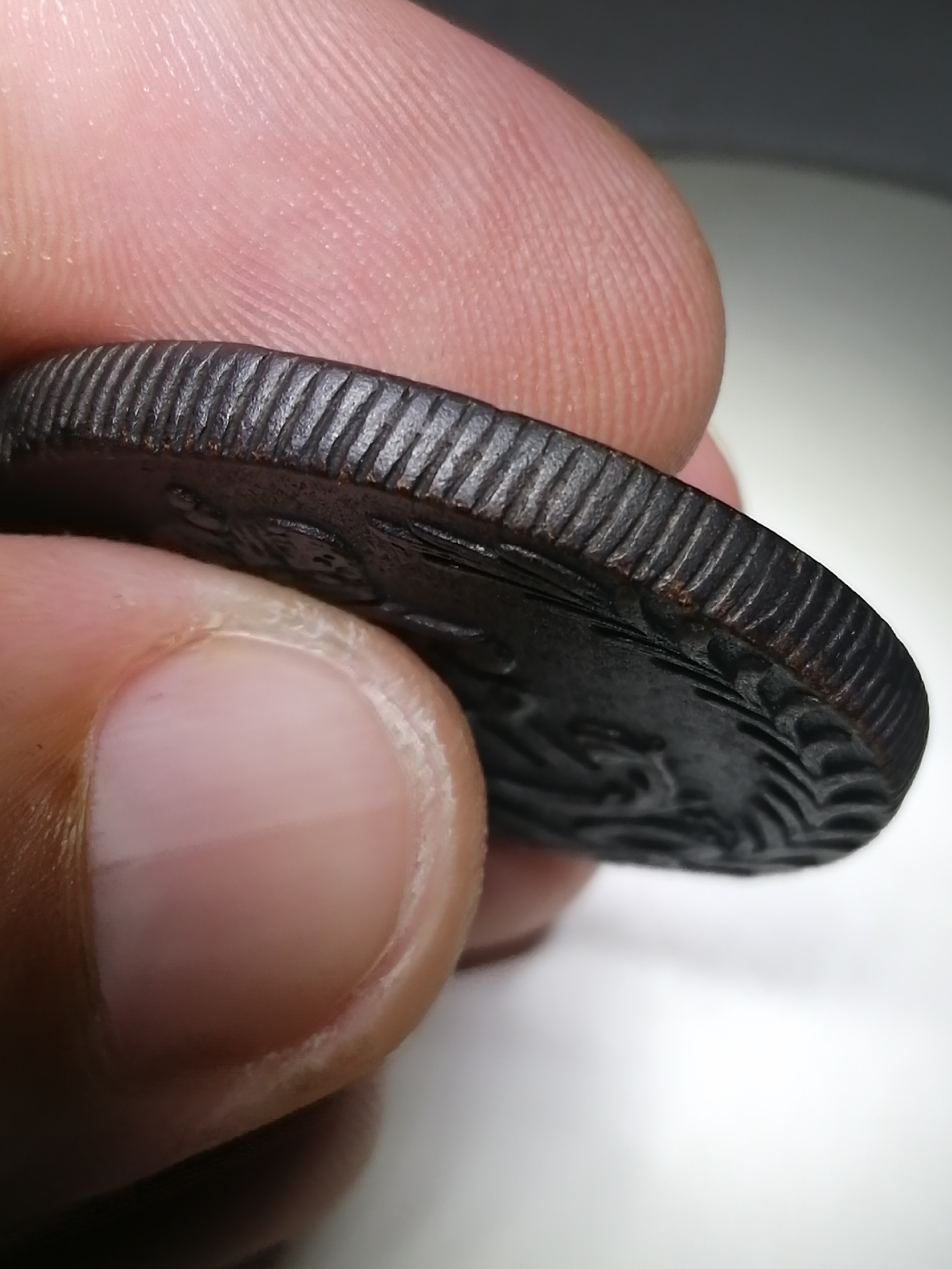 Вот вот☝️ на первый взгляд монета ровная и всё вроде бы хорошо но когда начинаешь детально разбираться то не всё так хорошо. Этот пятак не отчеканен🤷♂️а изготовлен другим способом. Когда смотрю на него через микроскоп то поле вообще странное, нету естественных полос (лучей, рисок) которые получаются при давлении на монету.