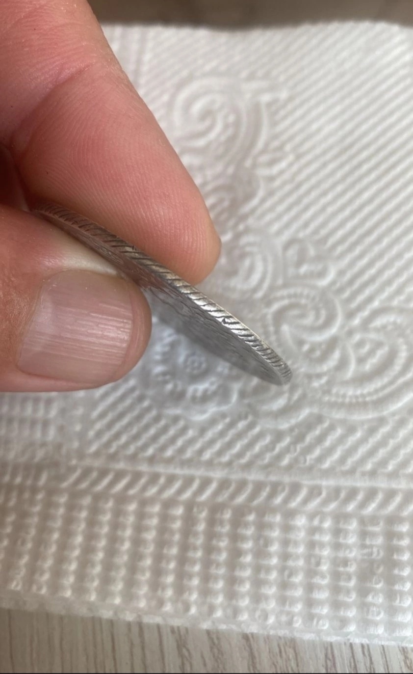 На Алиэкспресс нету монет с таким гуртом..хотя по весу видно,что фуфло