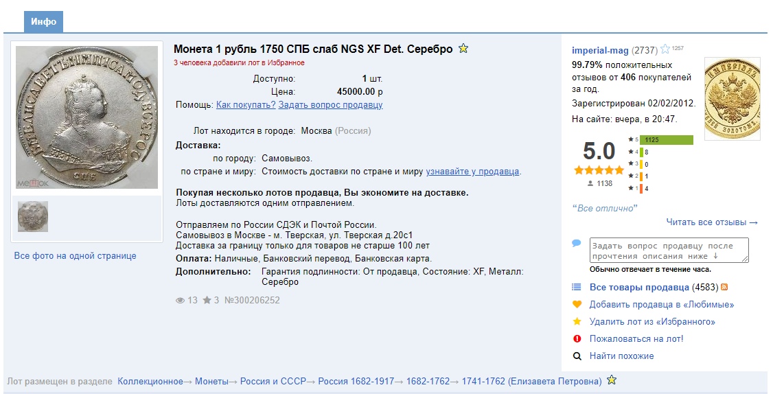 Рубль 1750 года СПБ — искусная подделка для коллекционеров