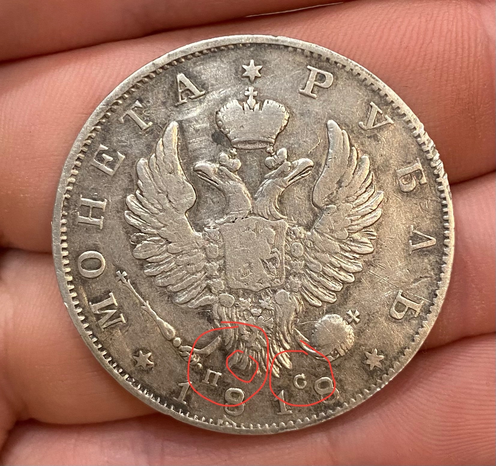 Рубль 1818 года Александра I — подлинная монета в обращении