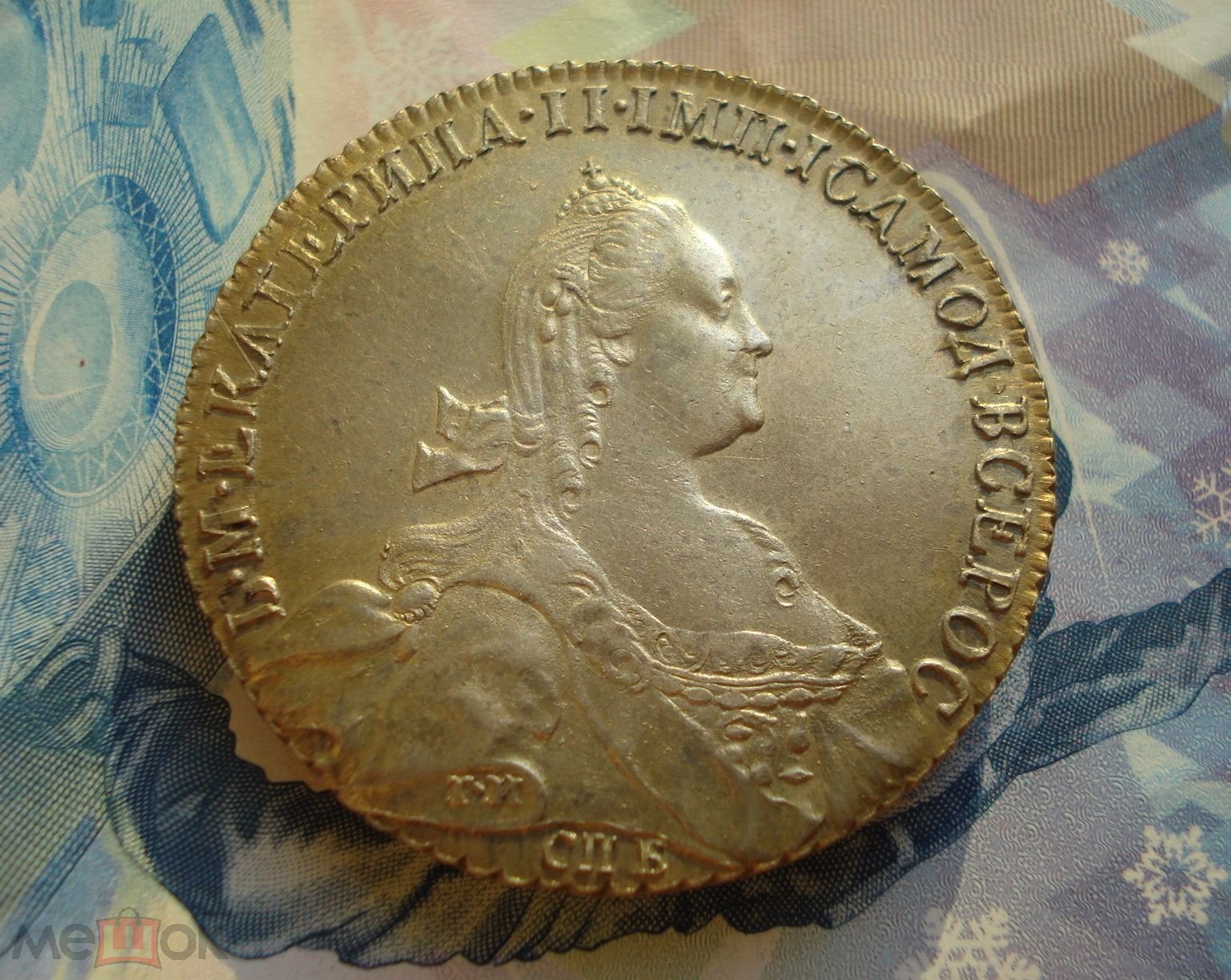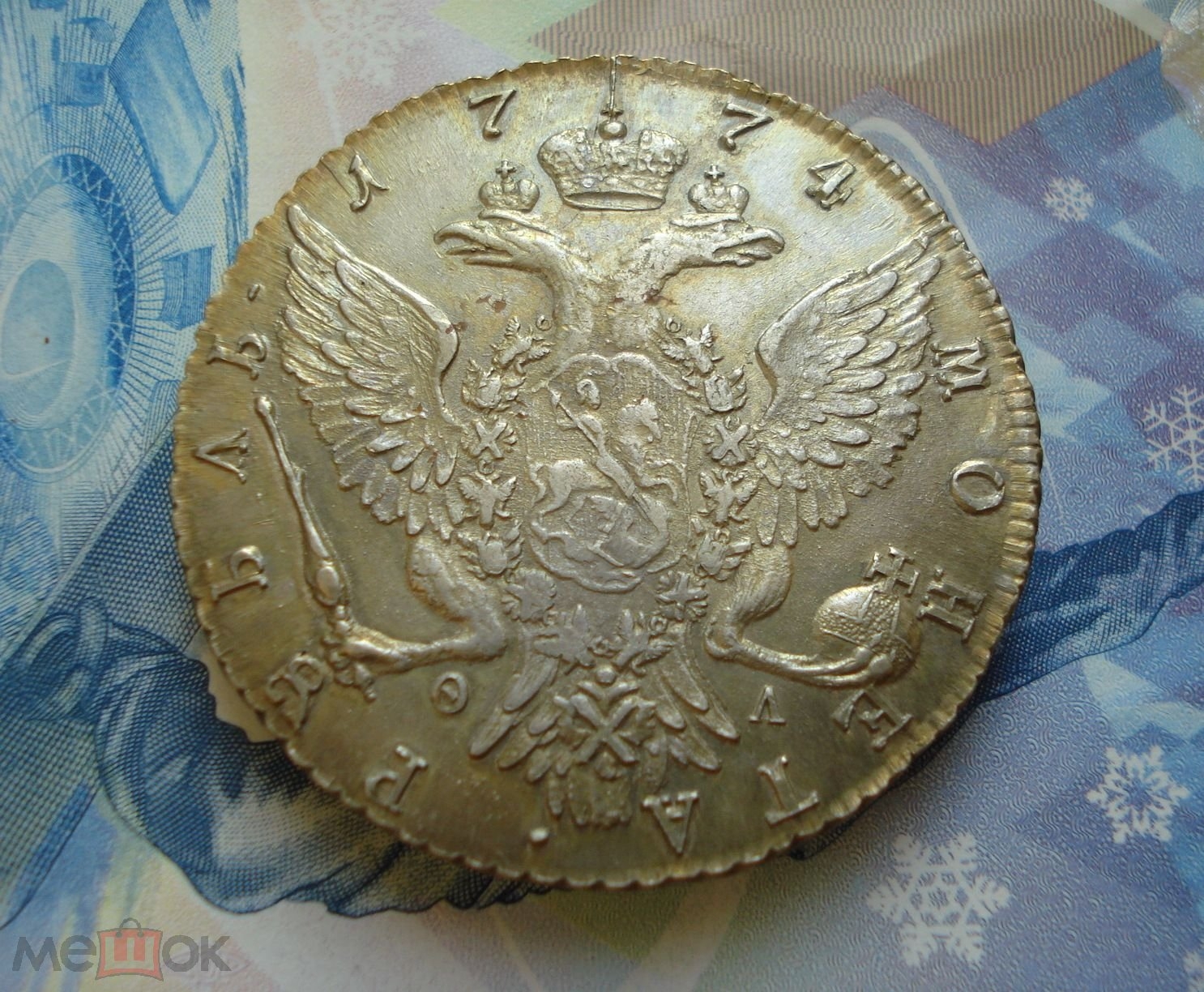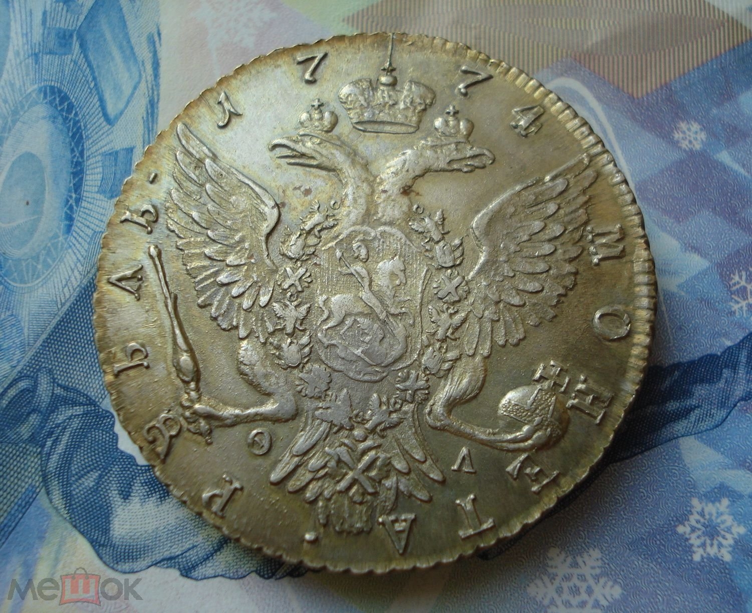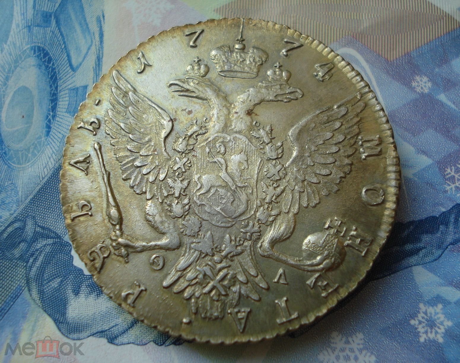 Рубль 1774 года СПБ ФЛ — подделка с копированными штемпелями