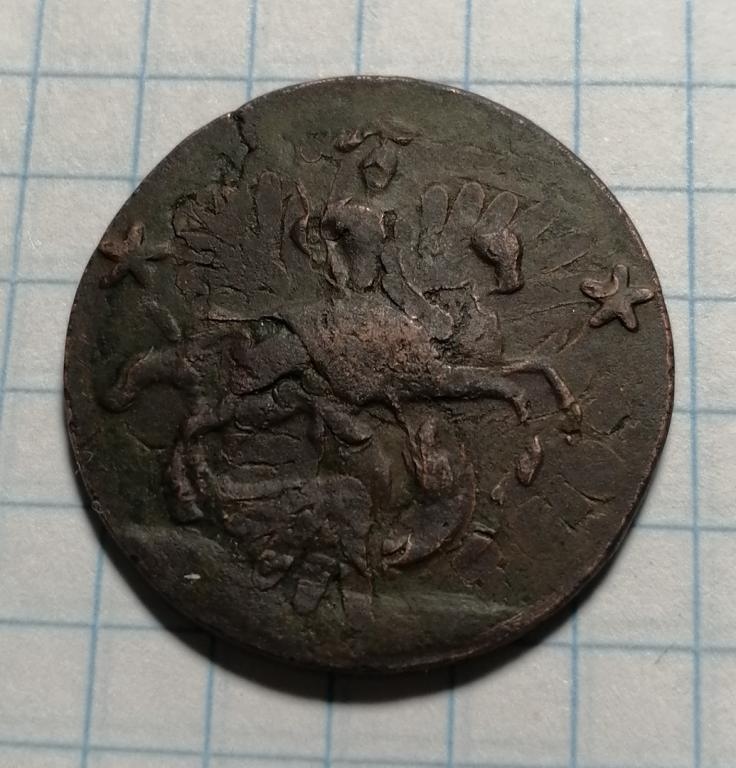 Представленная монета — 2 копейки 1762 года, отчеканенные в правление императора Петра III. Это фантазийная копия, не имеющая аналогов среди подлинных монет данного периода. Оригинальные медные 2 копейки этого года имеют совершенно другой дизайн и технологию изготовления.