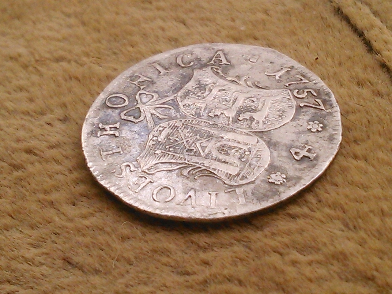 Ливонез 4 копейки 1757 года — оригинальная монета Елизаветы Петровны
