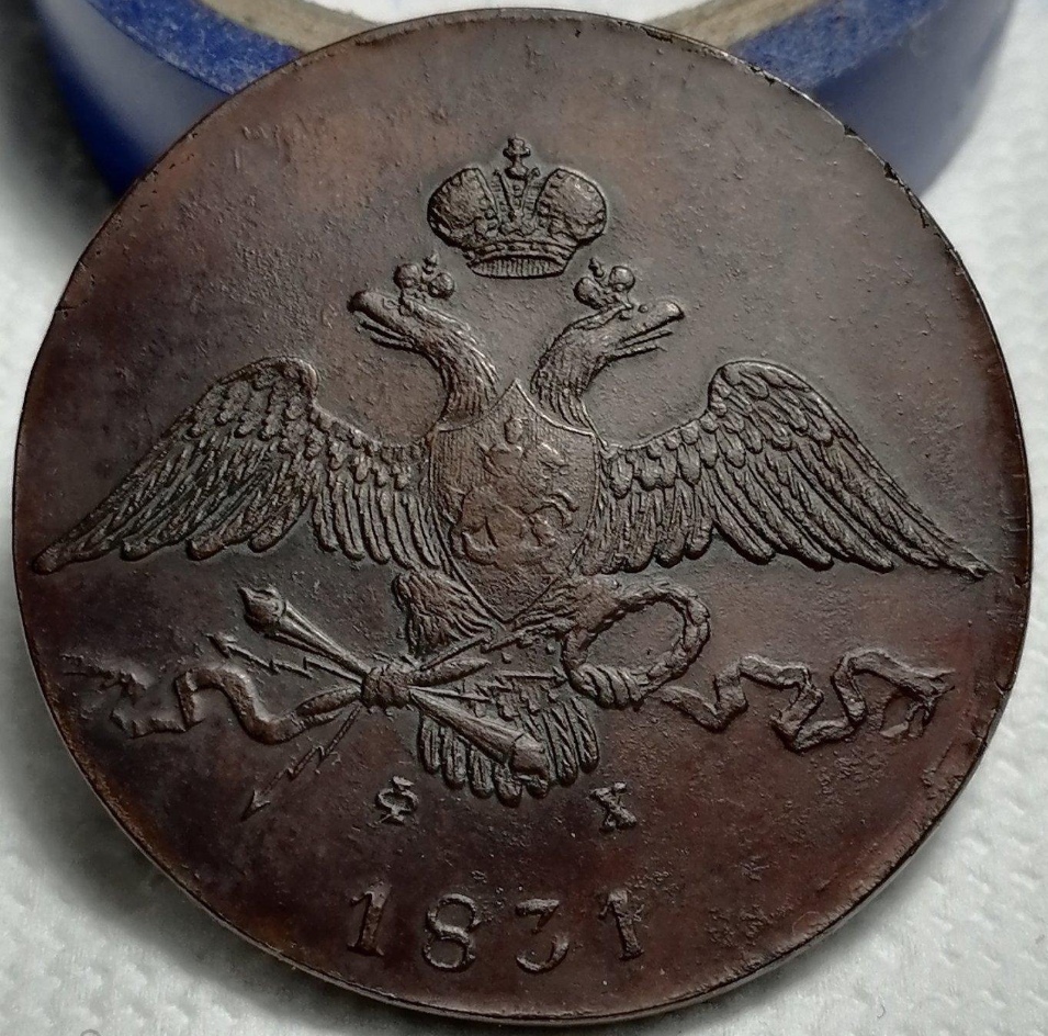 Монета 10 копеек 1831 года периода правления Николая I, отчеканенная на Екатеринбургском монетном дворе (инициалы минцмейстера Фёдора Хвощинского — ФХ). Представленный экземпляр является подделкой, изготовленной методом литья, что характерно для сувенирных копий и фальшивок.