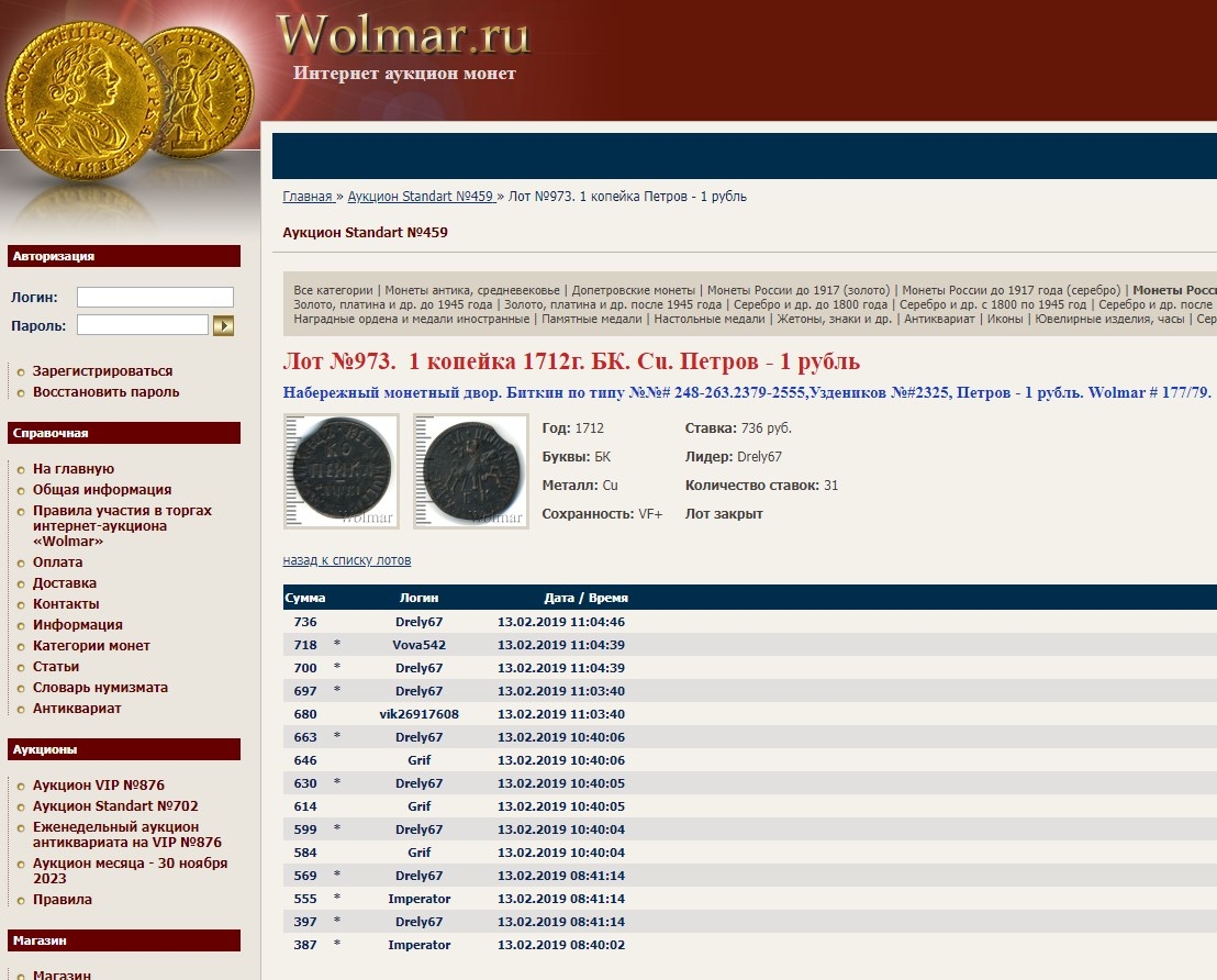 Копейка 1712 года Петра I — грубая подделка для аукциона