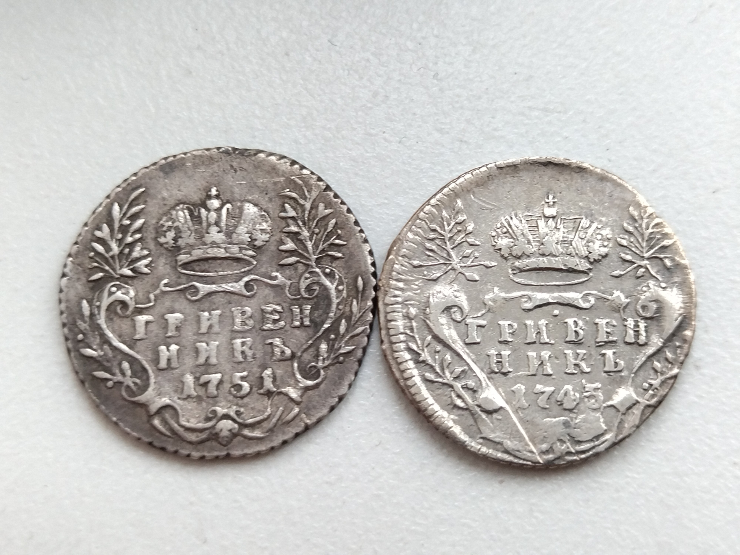 Гривенник 1745 года Елизаветы Петровны — подлинная монета