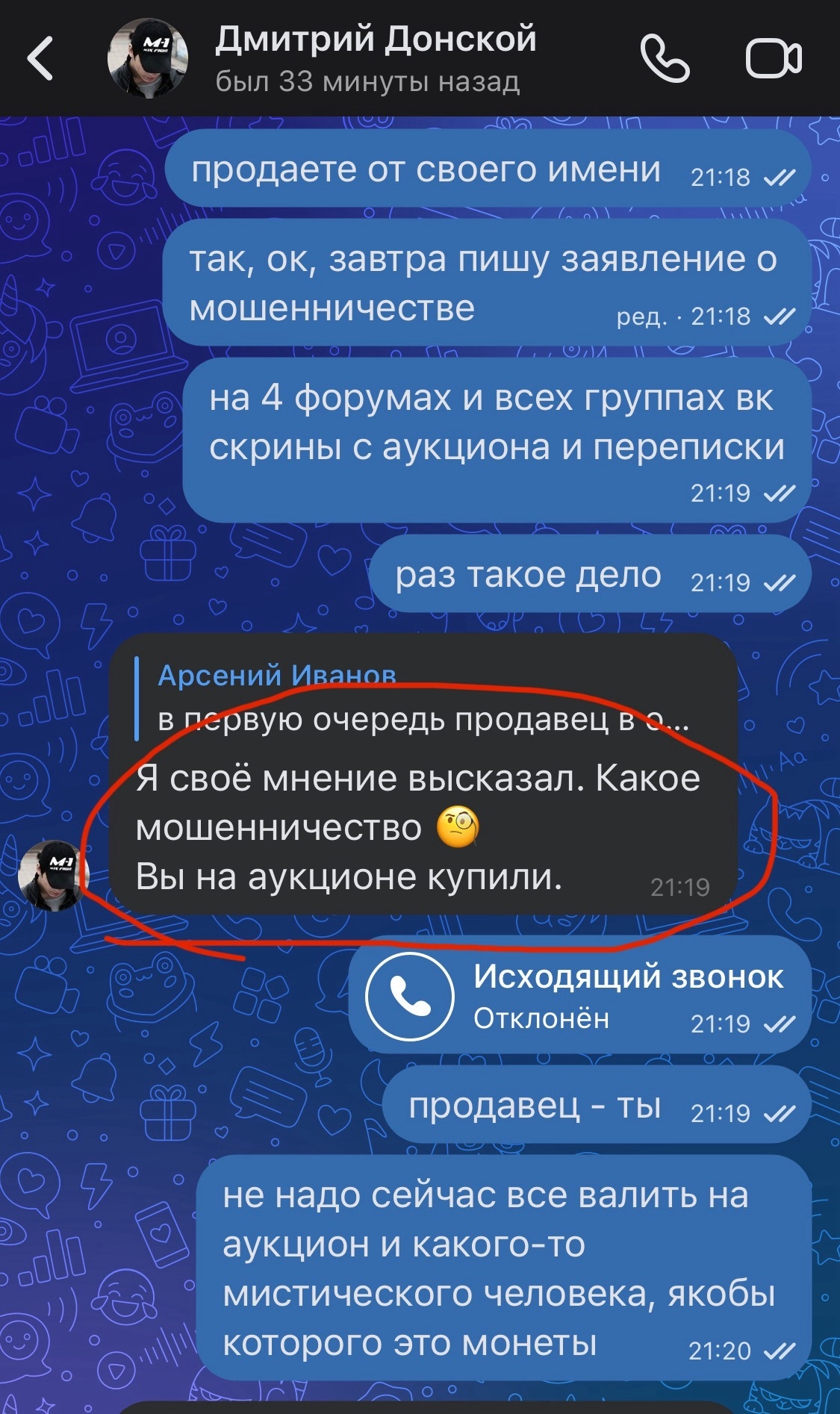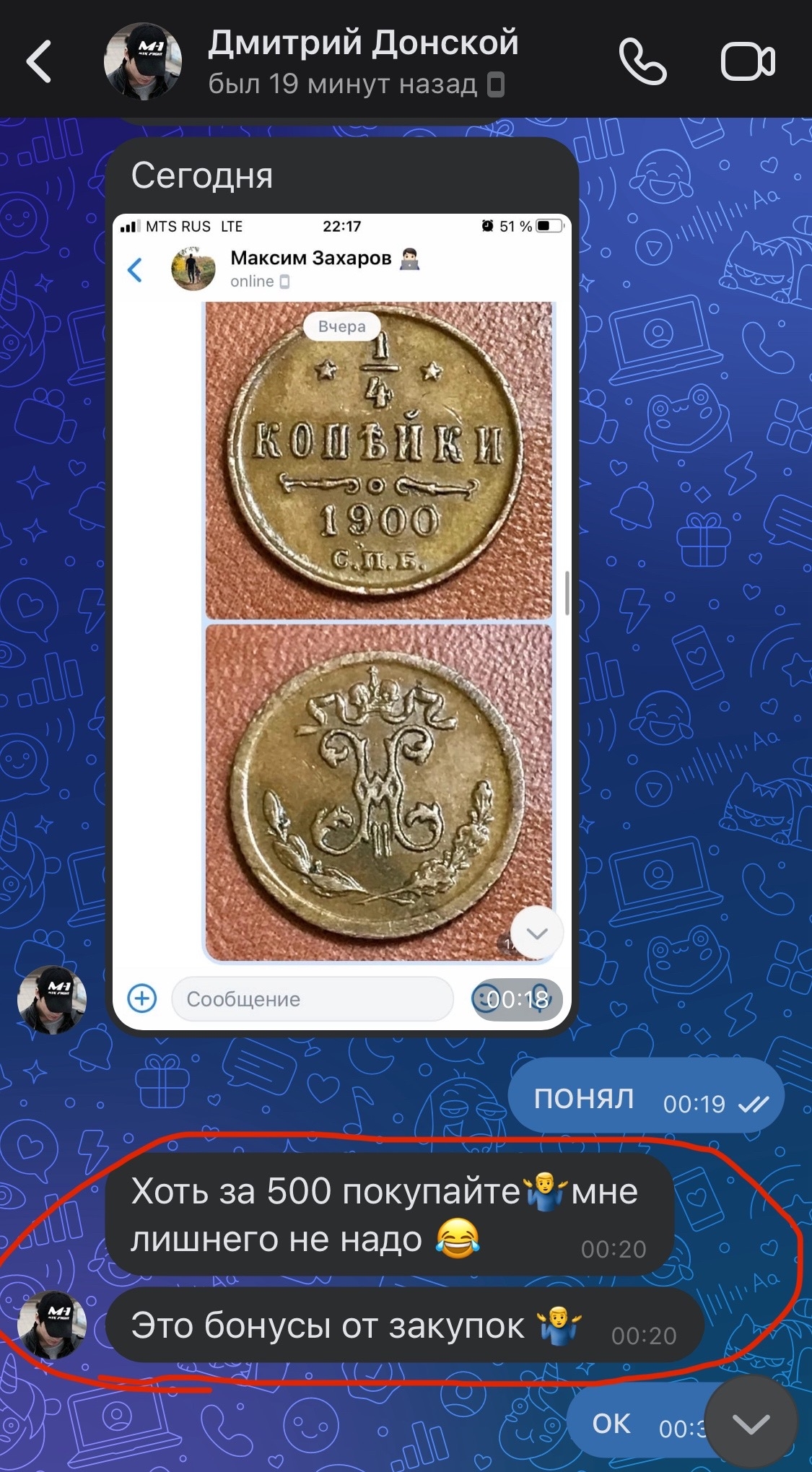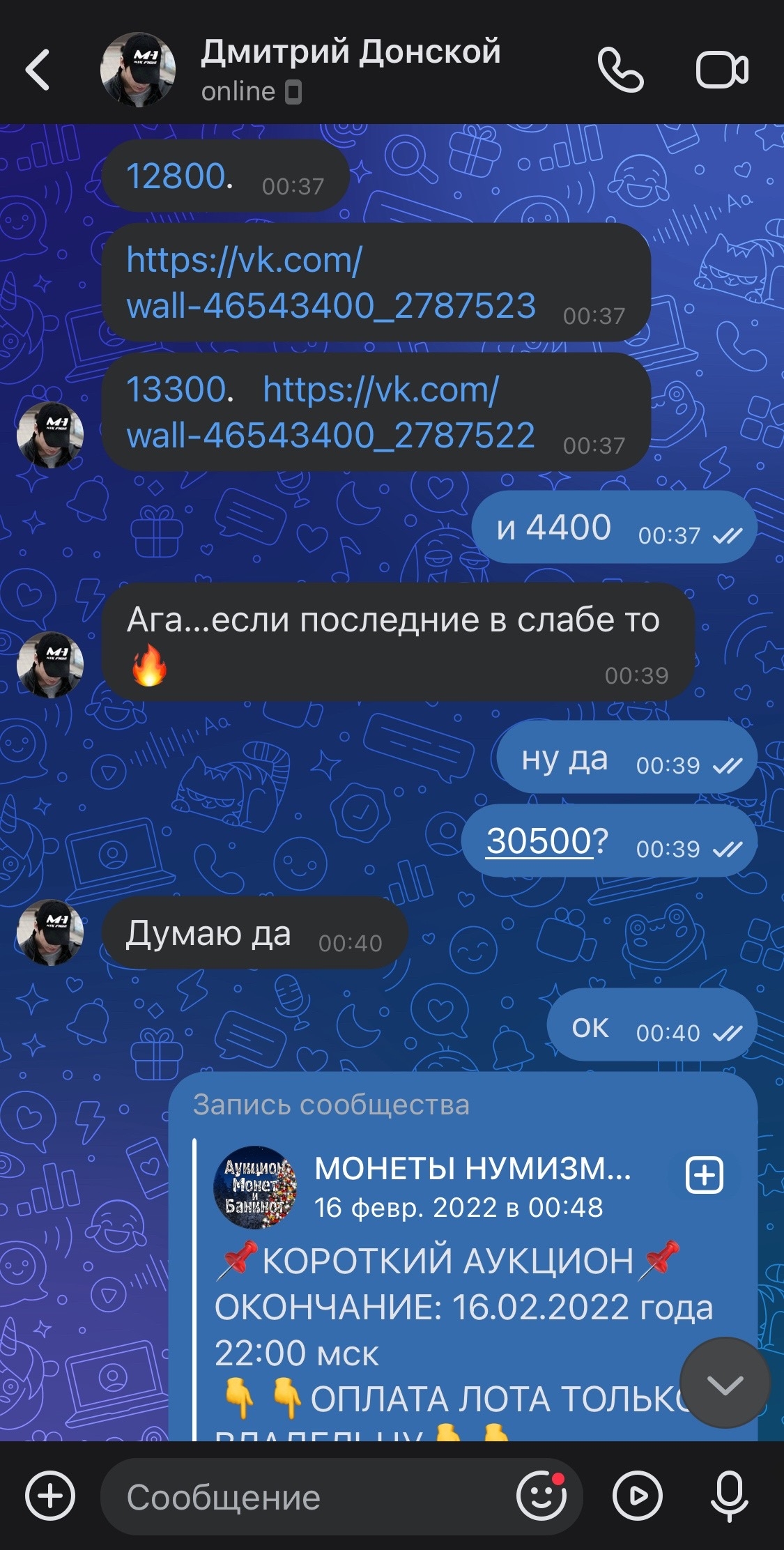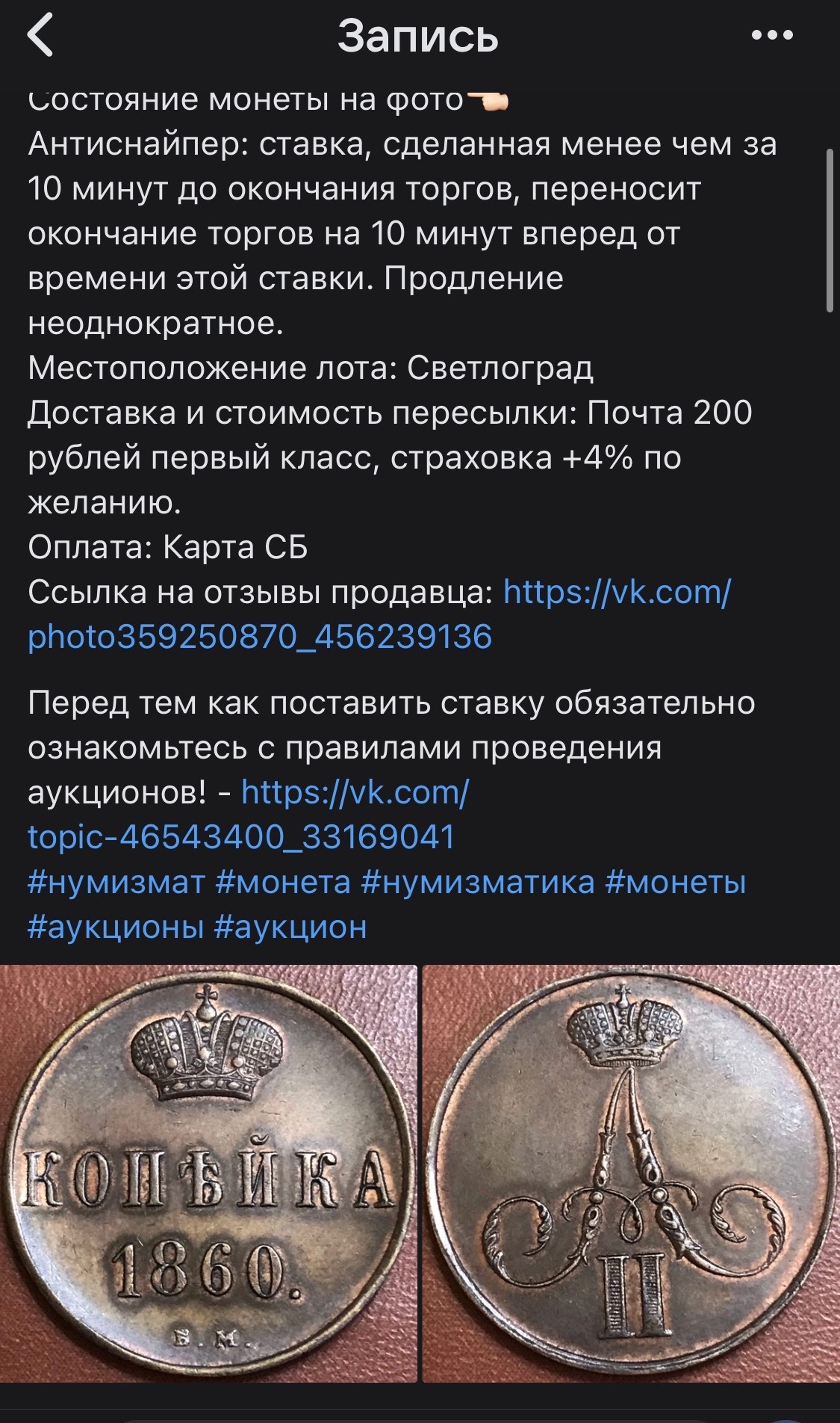 при чем лот, судя по всему, гнали и «забрал» его подставной, тк написав ему по сей монете, он молча кинул в чс