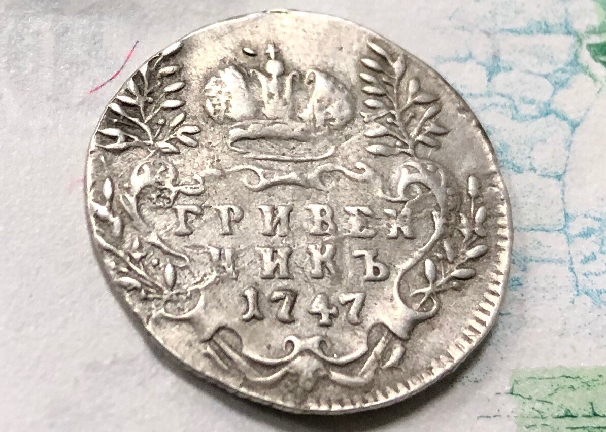 Гривенник 1747 года Елизаветы Петровны — оригинал с реставрацией