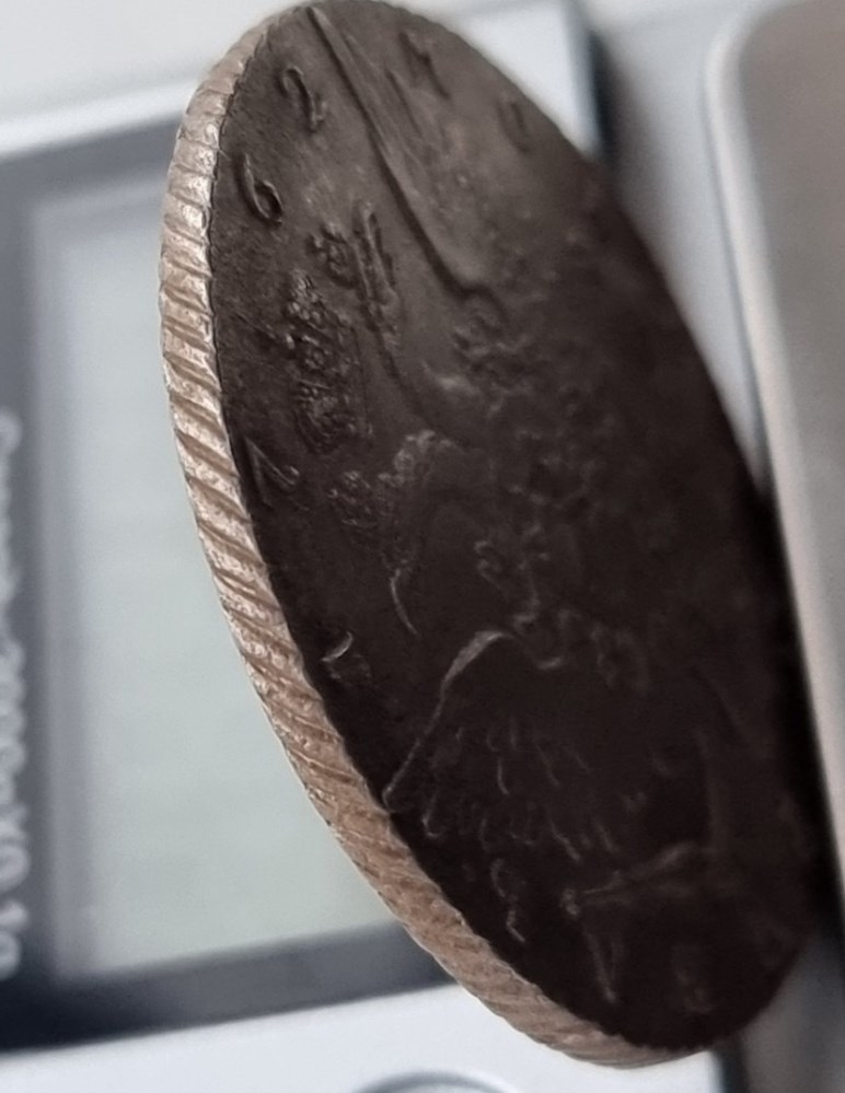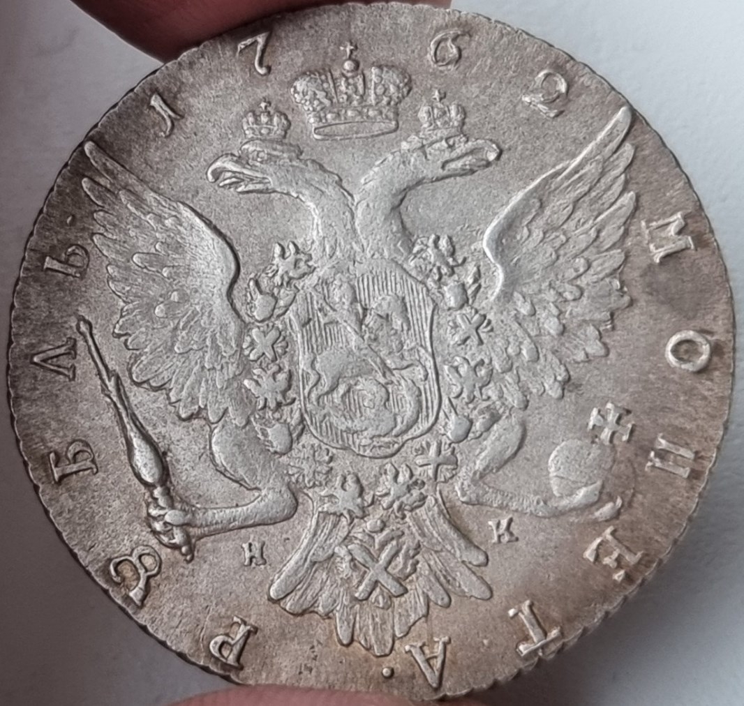 Монета представляет собой копию серебряного рубля 1762 года, отчеканенного при императоре Петре III на Санкт-Петербургском монетном дворе (обозначение «СПБ»). Оригинальные рубли этого года имеют высокую коллекционную ценность. Представленный экземпляр является качественной современной подделкой, о чём прямо указано в посте и подтверждено комментариями.