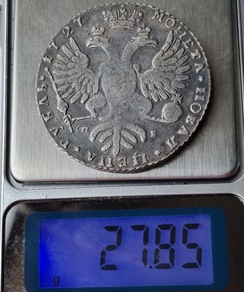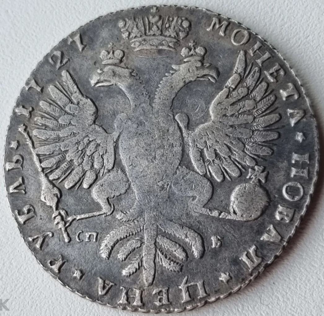 Монета представляет собой копию серебряного рубля 1727 года, выпущенного в период правления императрицы Екатерины I. Оригинальные монеты этого типа чеканились на Санкт-Петербургском монетном дворе и имеют высокую коллекционную ценность. Данный экземпляр является современной репликой, о чём прямо указано в описании поста.