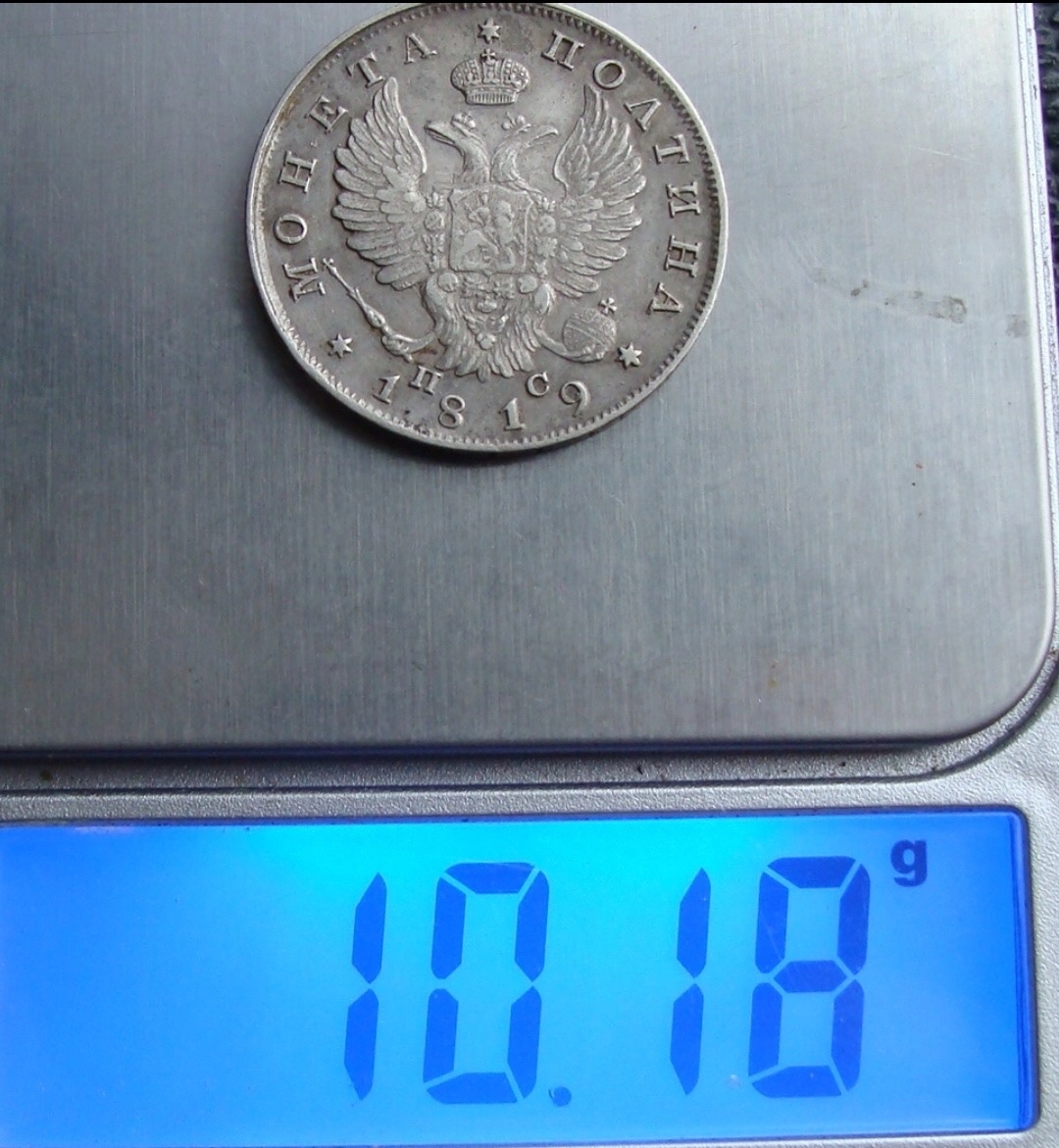 Монета оригинал, корона широкая, самая распространненая среди полтин 1819 года , герб подкачал ))))