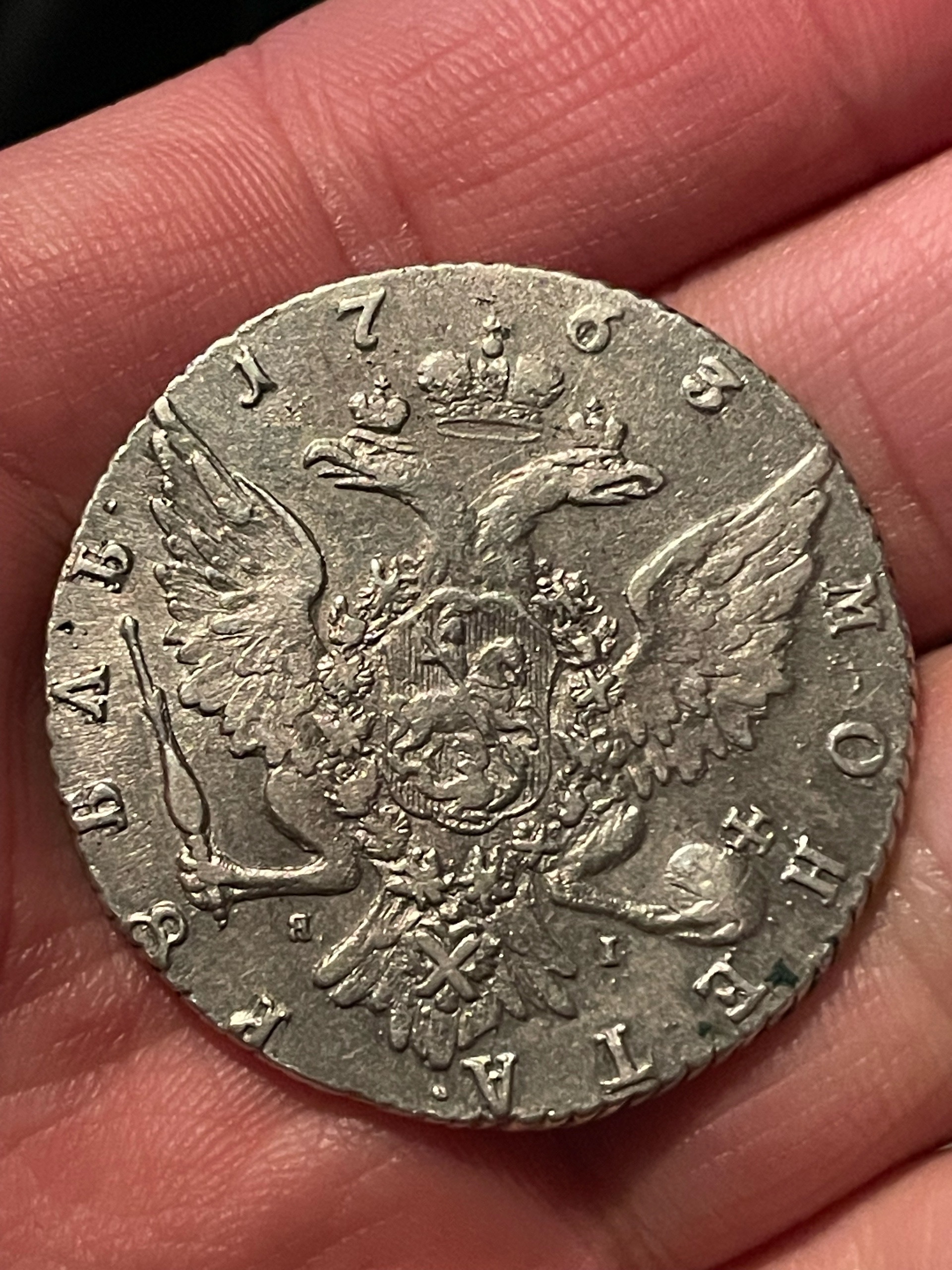 Рубль 1763 года СПБ ЯI — подлинная монета Екатерины II