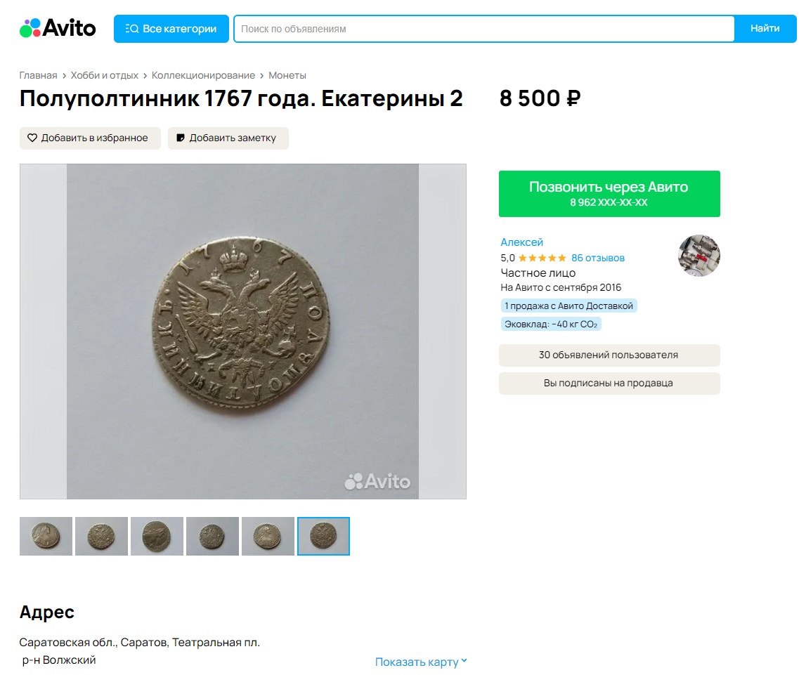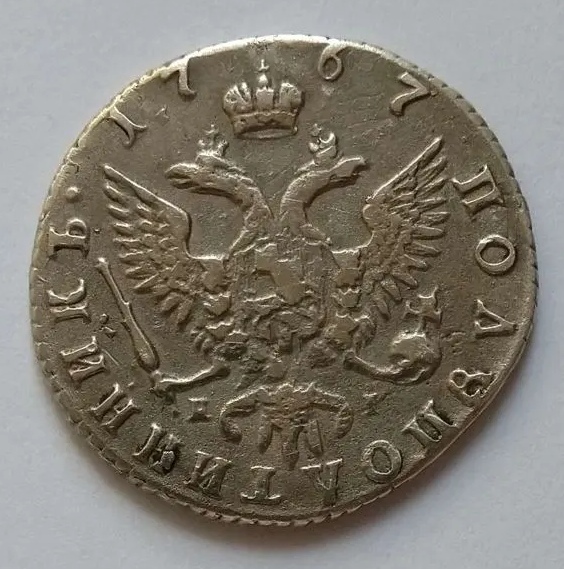 Полуполтинник (25 копеек) 1767 года с монетным двором ММД (Московский монетный двор) был отчеканен в период правления Екатерины II. Данный экземпляр, представленный в посте, является подделкой, о чём прямо указал автор публикации. Подобные копии часто изготавливаются для коллекционеров, не знакомых с подлинными характеристиками оригинальных монет.