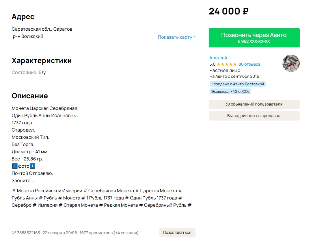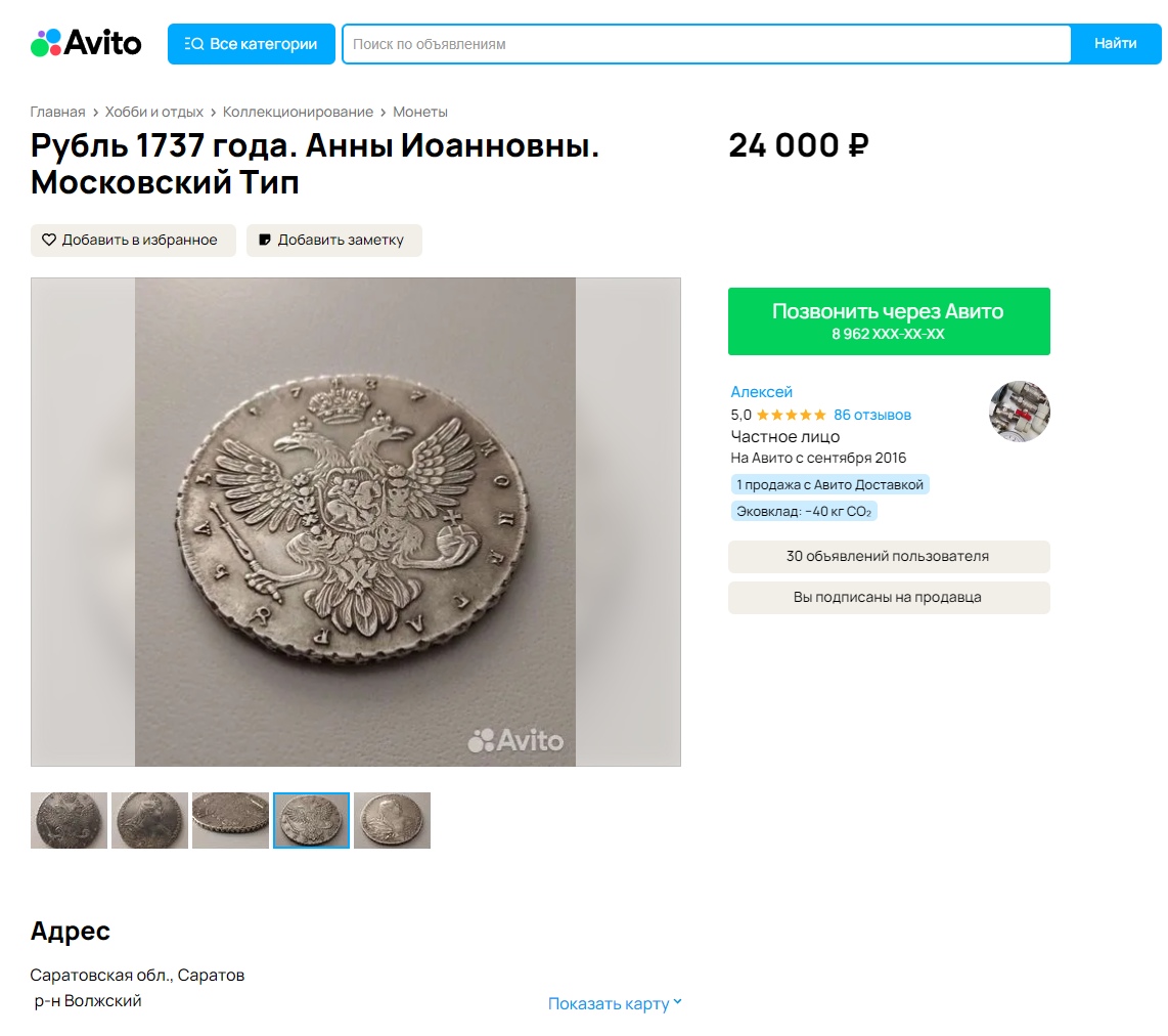Рубль 1737 года Анны Иоанновны — подделка или копия