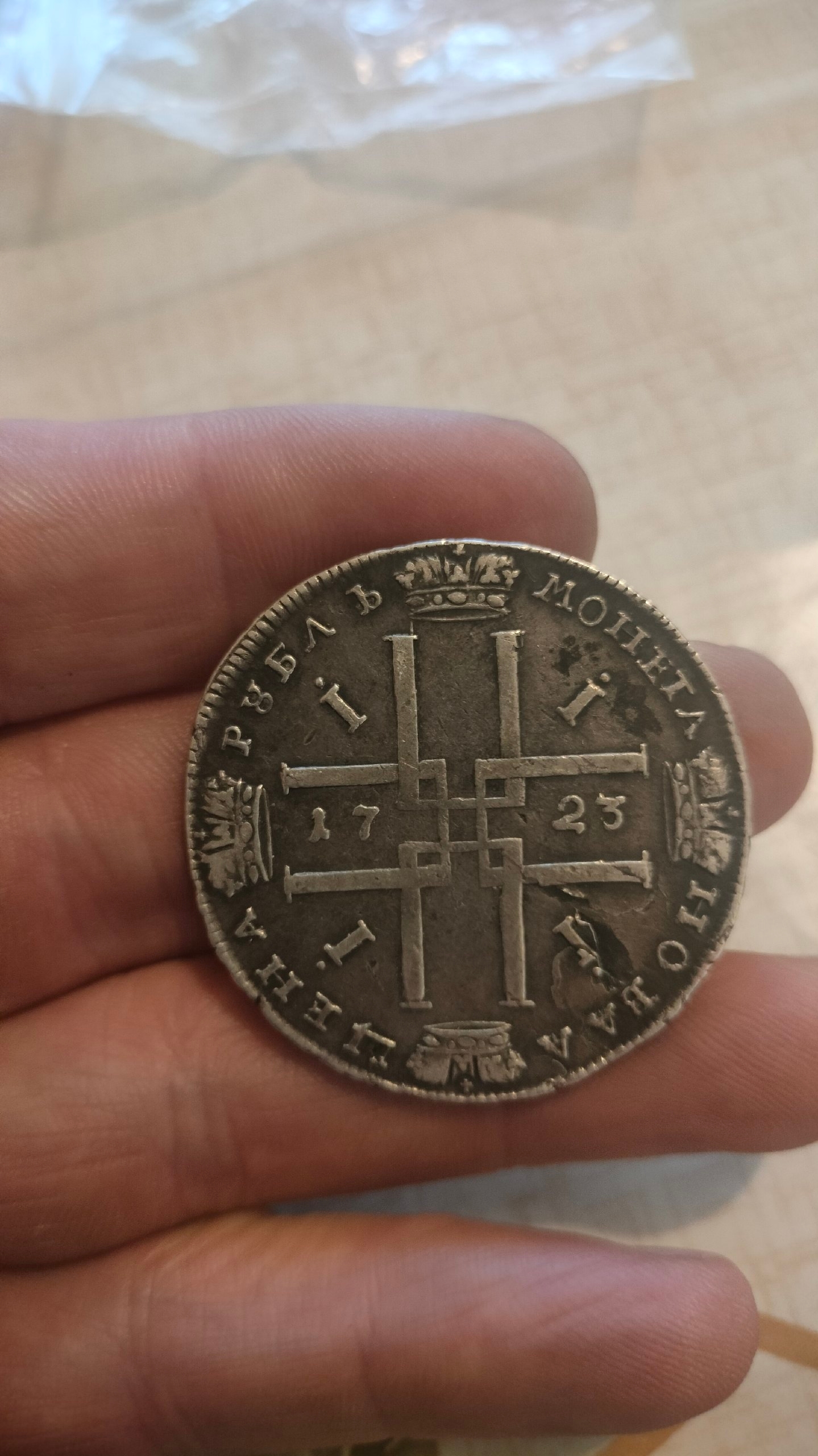 Рубль 1723 года Петра I — подлинная монета с портретом