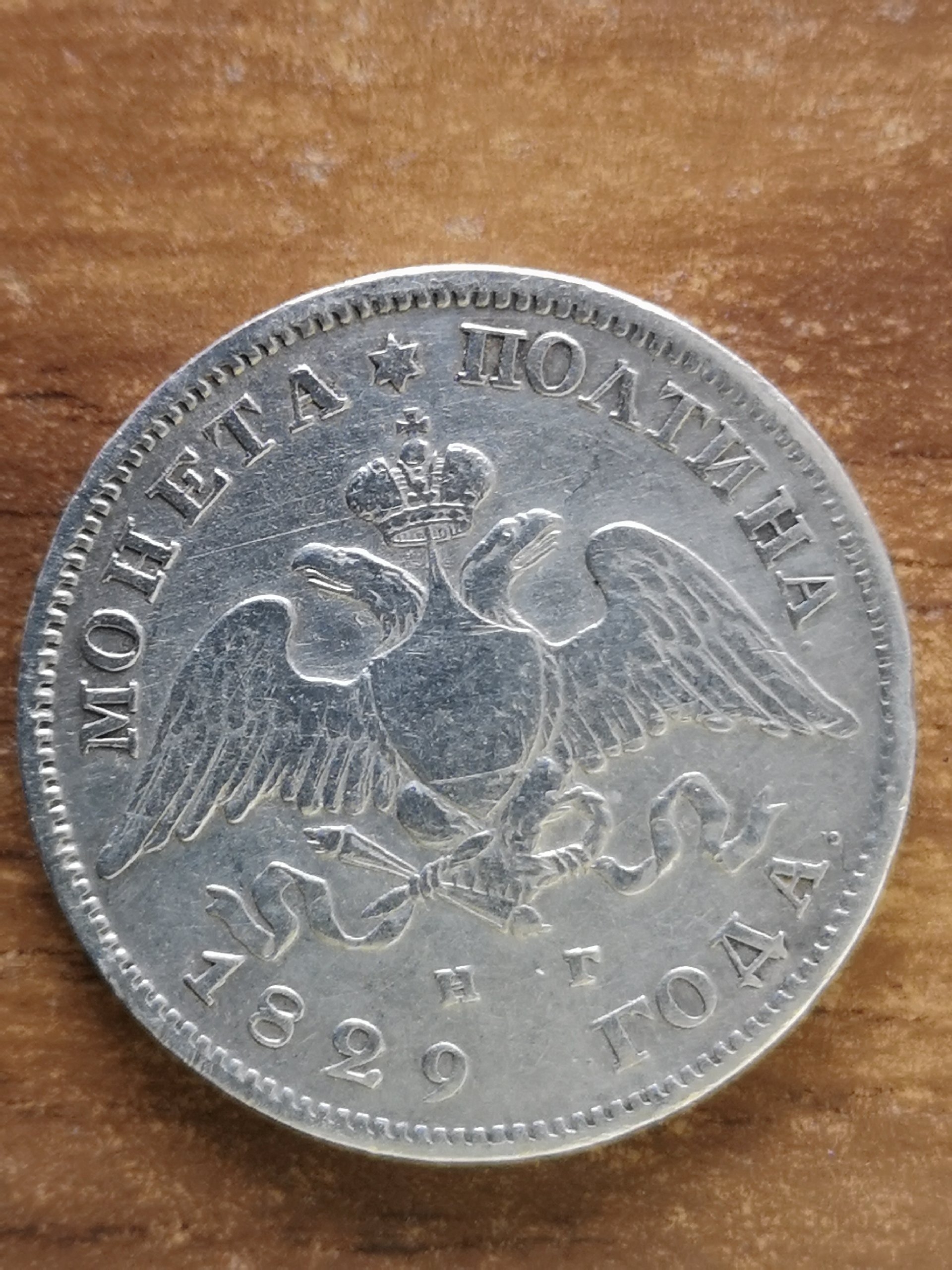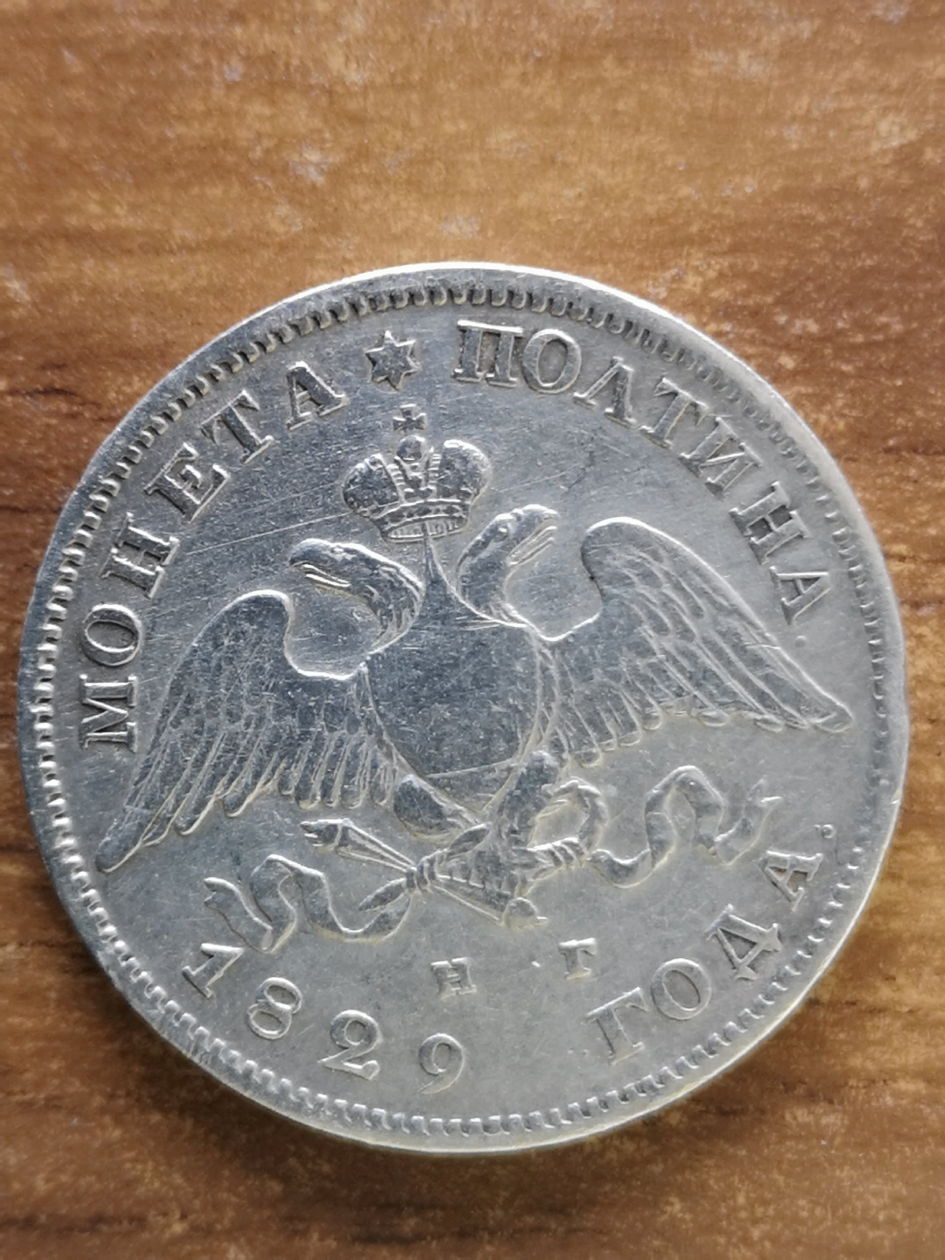 Полтина 1829 года — поддельная монета с «прыгающими» буквами