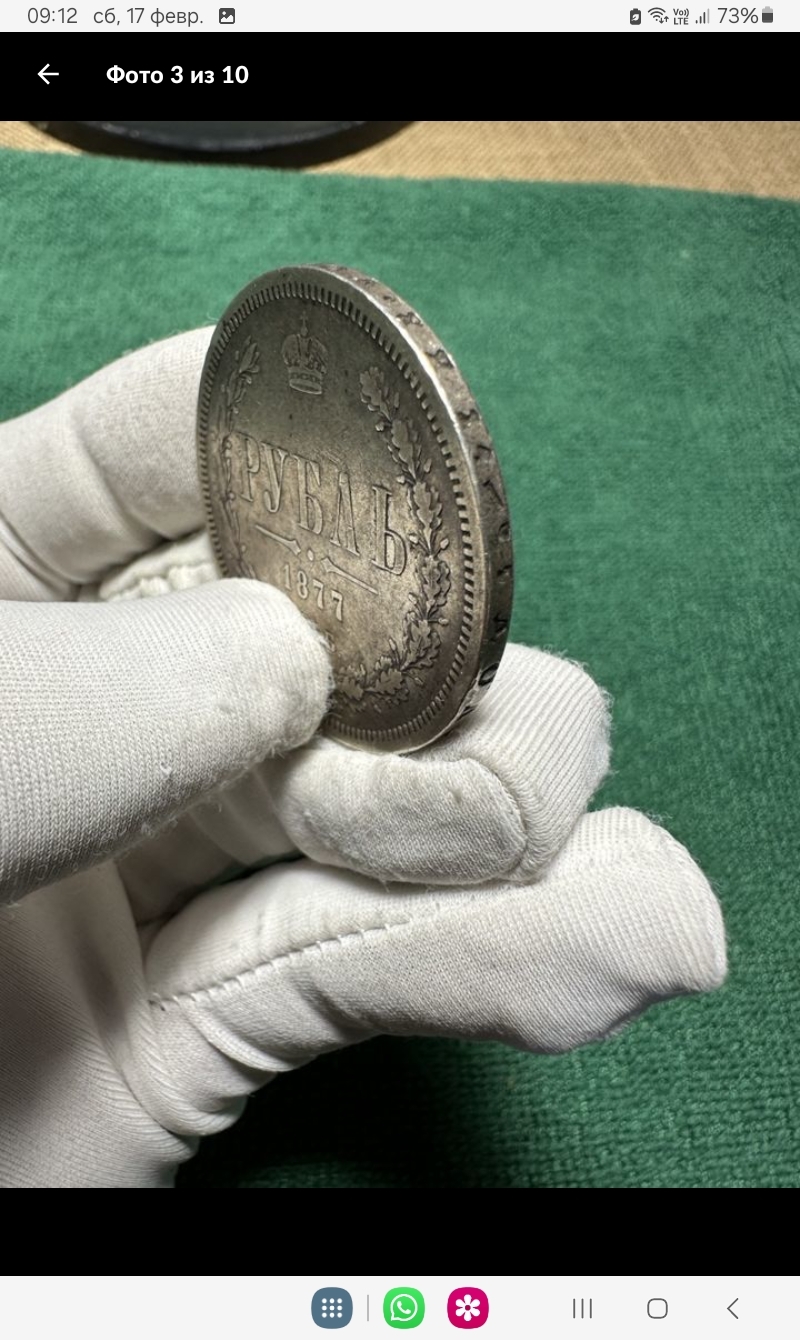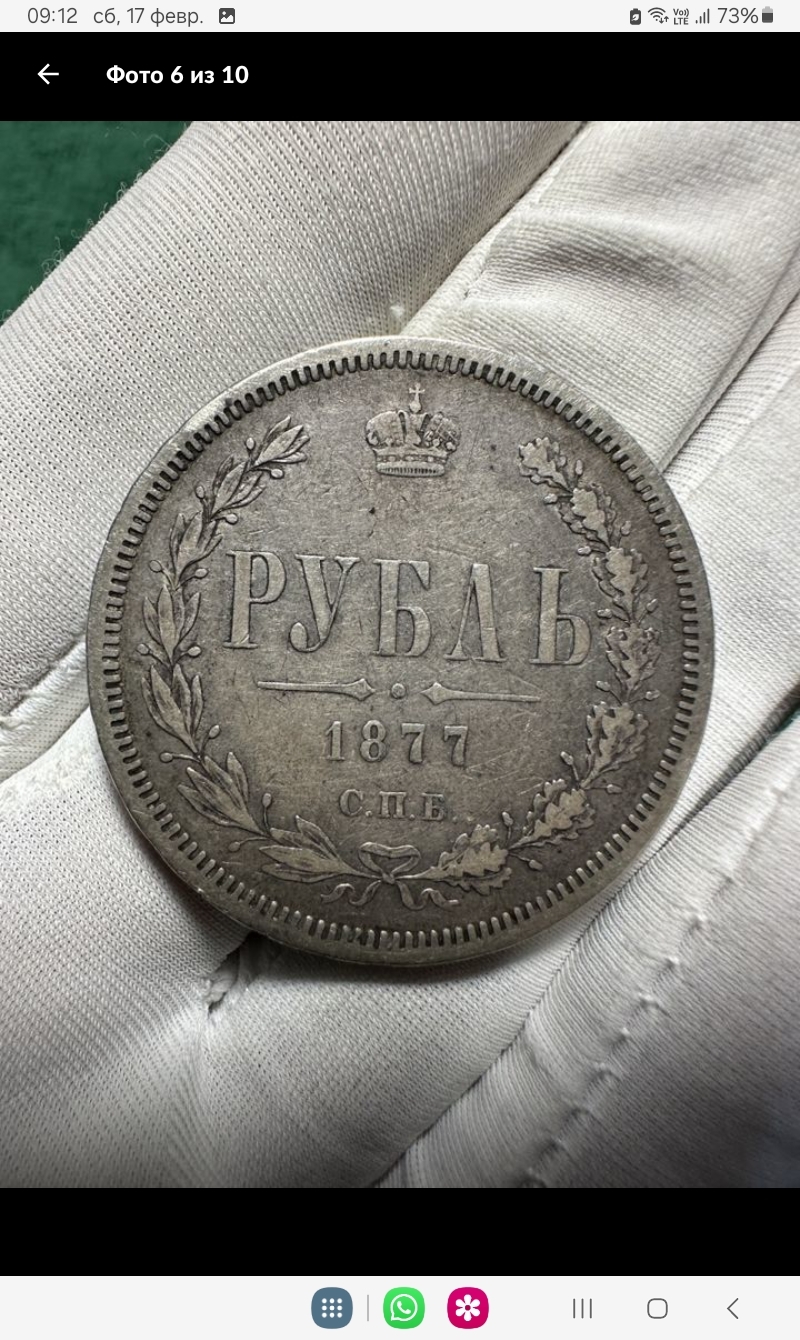 Серебряный рубль 1877 года, отчеканенный в период правления императора Александра II. Это стандартная ходовая монета регулярного чекана, одна из самых распространённых в своём типе. Комментаторы-нумизматы, проанализировав фото, единогласно признали её подлинной, хотя и в сильно потертом (убитом) состоянии.
