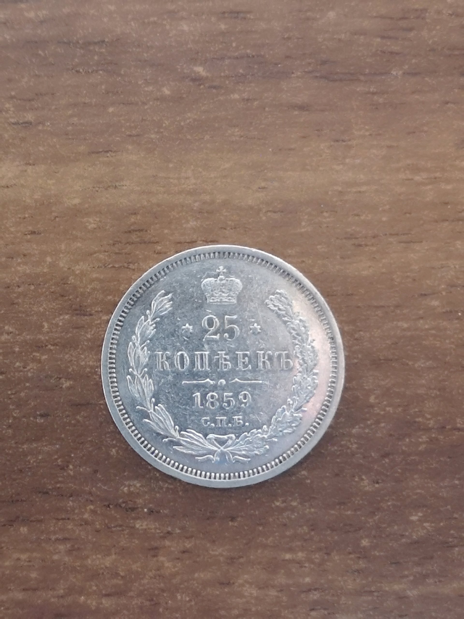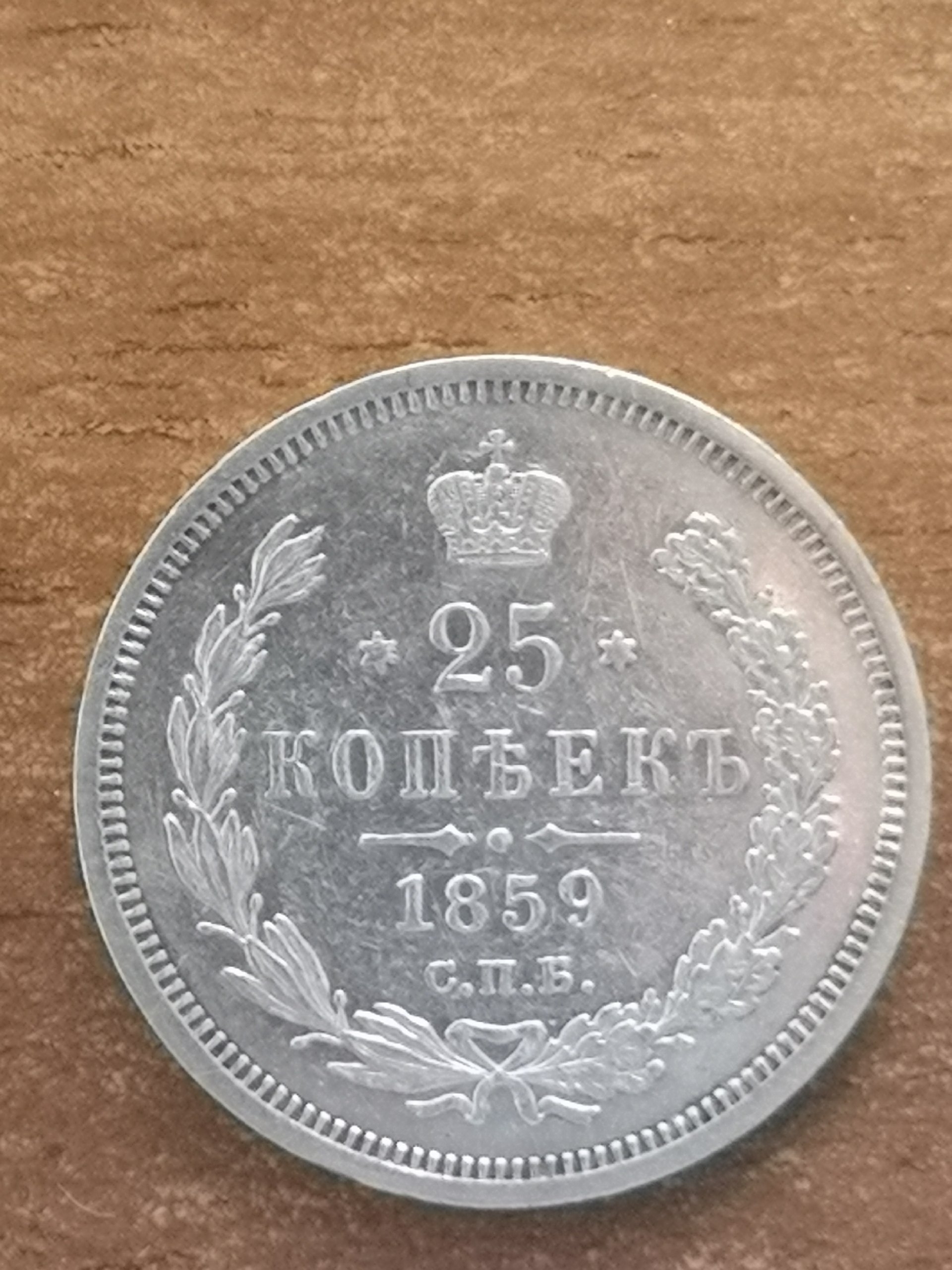 25 копеек 1859 года СПБ ФБ — подлинная монета Александра II