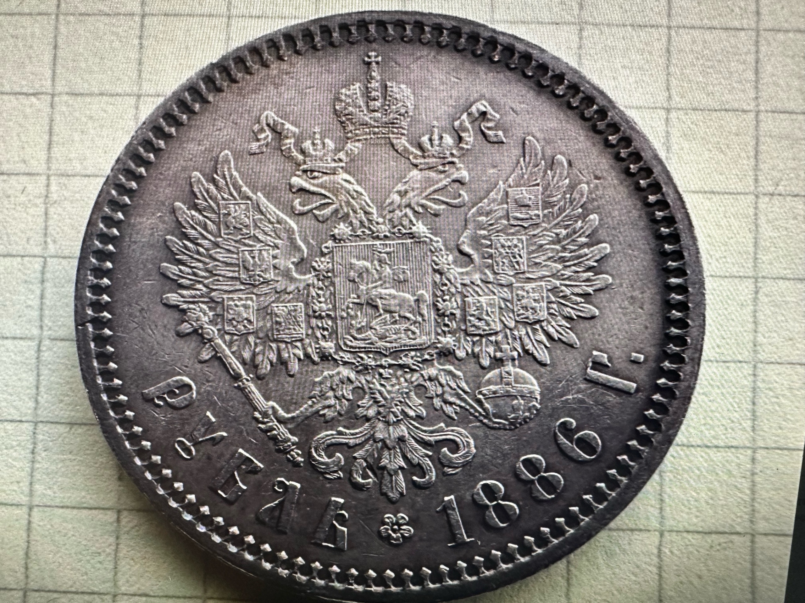 Это фуфло! Других вариантов нет. Всем приевшийся фуфловый рубль 1886 г. Большая голова и 1886 г. Малая голова из одой и той же бочки что и этот экземпляр фуфла.