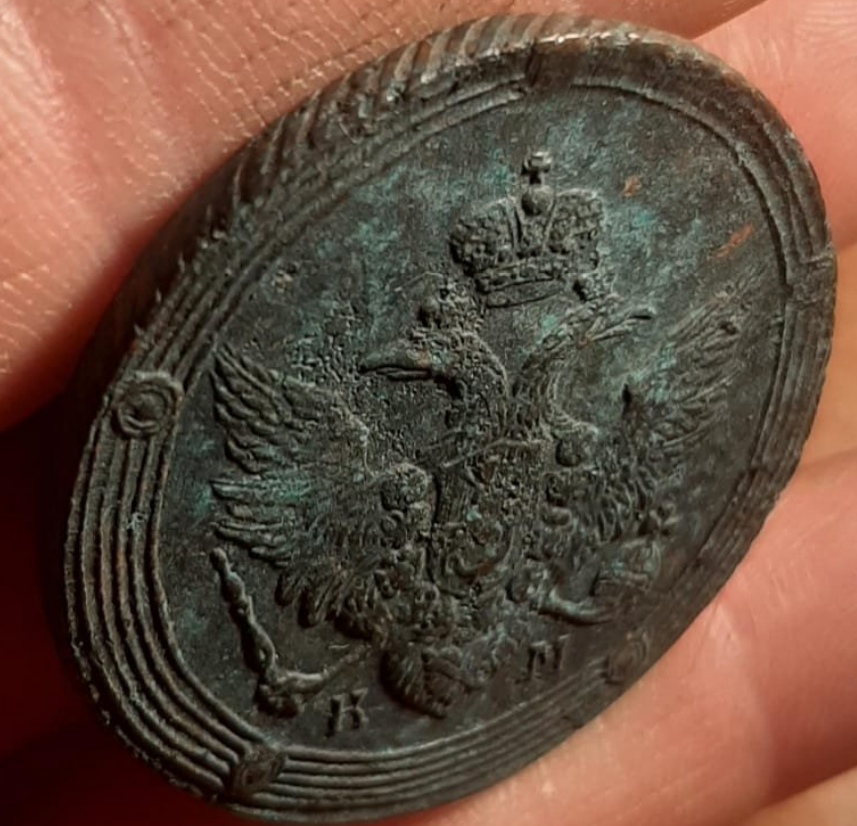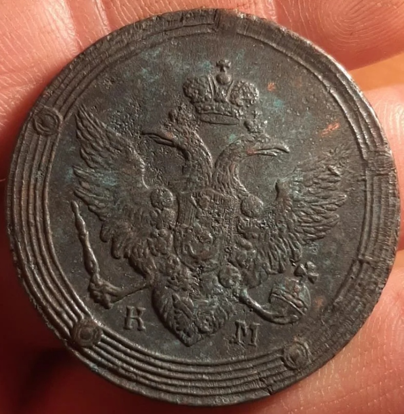 Монета номиналом 5 копеек периода правления Александра I. Представленный экземпляр является современной подделкой, отлитой в форме. Копия имеет низкое качество исполнения, что особенно заметно по несоответствующему оригиналу гурту и общей нечёткости деталей.