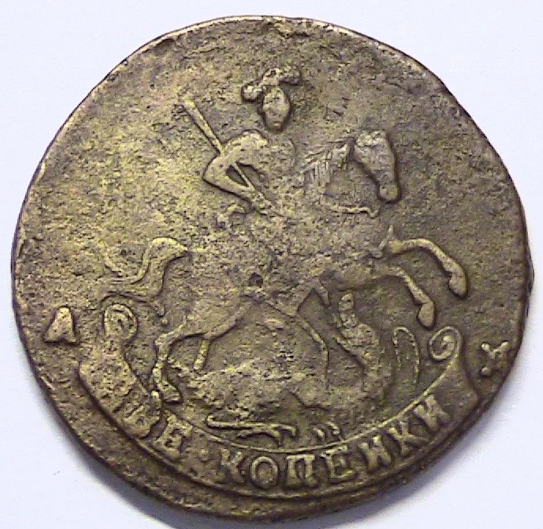 Монета номиналом 2 копейки 1794 года с вензелем Екатерины II (ЕМ) является копией. Оригинальные монеты этого типа чеканились на Екатеринбургском монетном дворе из меди. Данный экземпляр представлен как реплика, что прямо указано в описании поста.