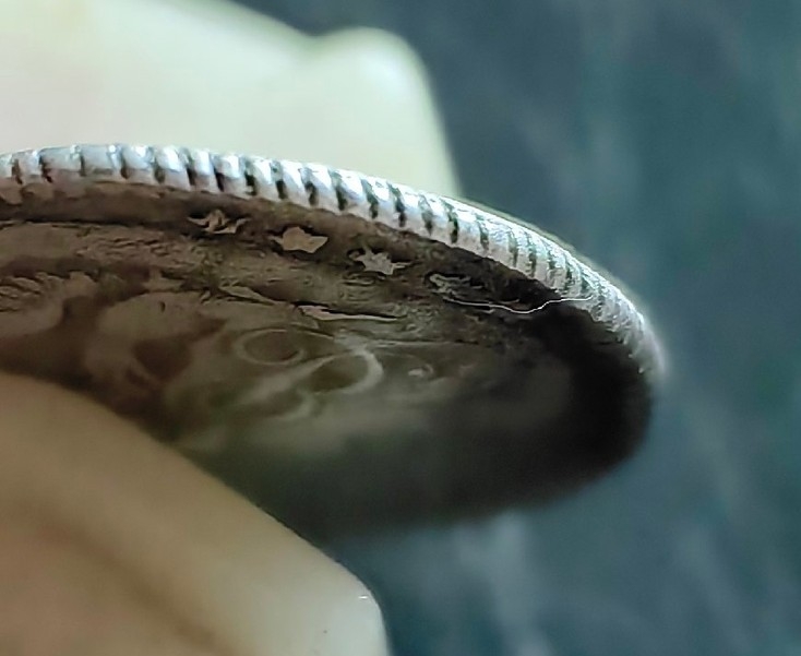 Сложная монета. Служил в погранконтроле больше 25 лет. При проверке документов используется такой прием, как проведение прямой линии через определенные реквизиты. В данном случае, если проводить линию вдоль цифры "1", то видно заметное отклонение завитка мантии. Сорян за "прямоту" линии🤣🤣🤣. Фрагмент фото монеты из поста на моём коллаже справа