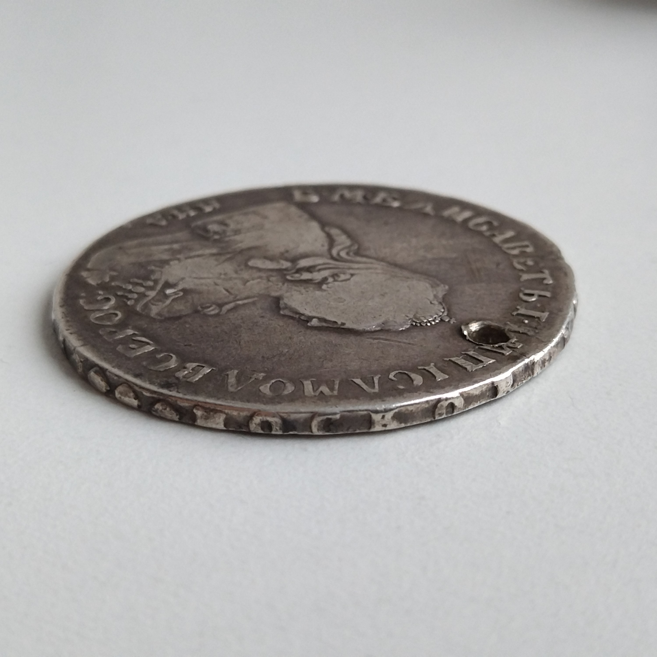 Рубль 1755 года Елизаветы Петровны — подлинная монета с отверстием