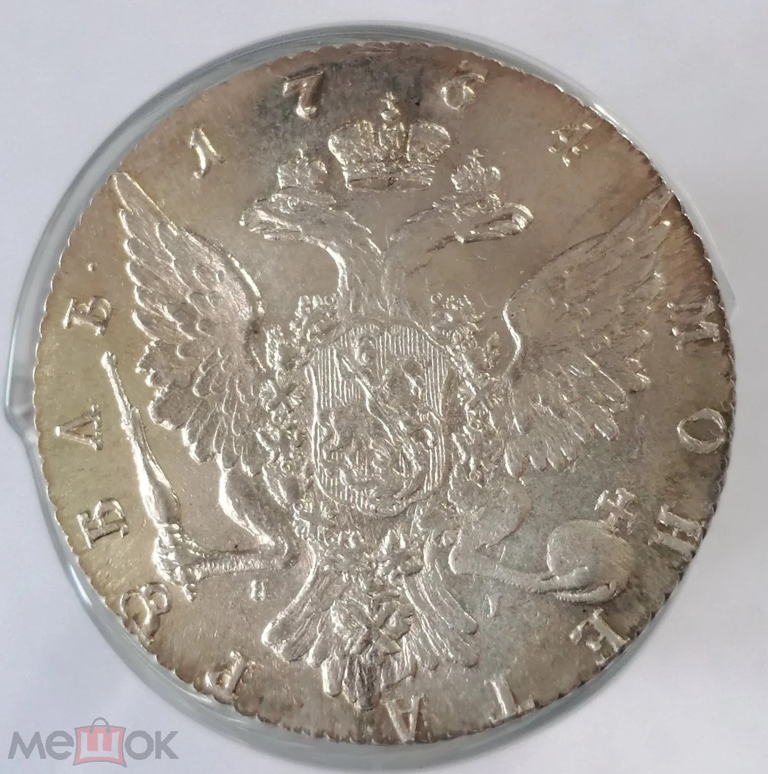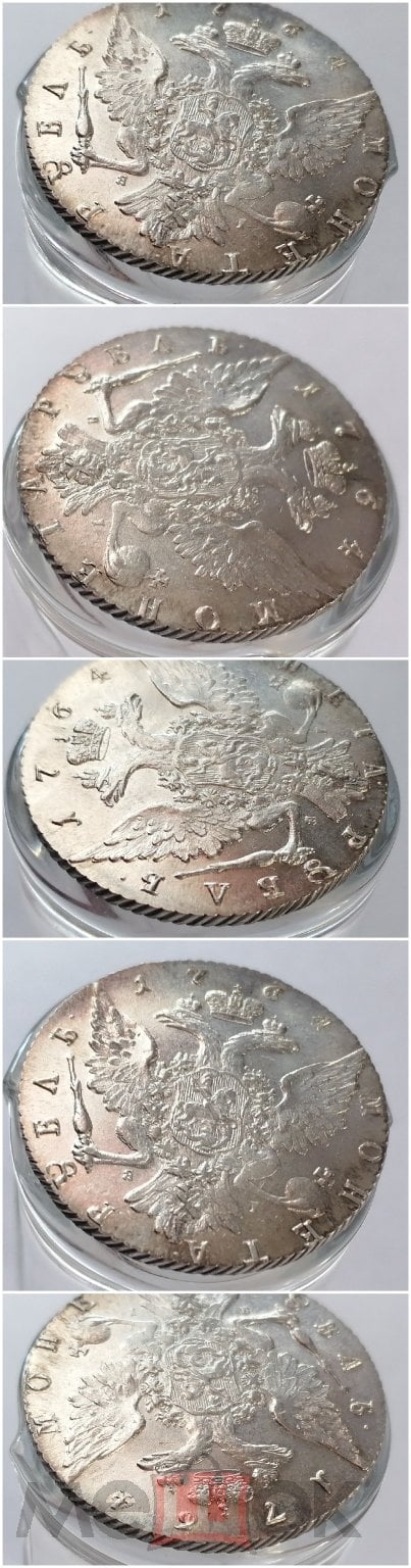 Монета представляет собой копию серебряного рубля 1764 года, отчеканенного в период правления императрицы Екатерины II. Несмотря на высокое качество исполнения и соответствие веса оригиналу, это современная подделка, отлитая из серебра 800-й пробы. Эксперты определяют её как «клон» по характерным признакам, отличающимся от подлинных экземпляров.