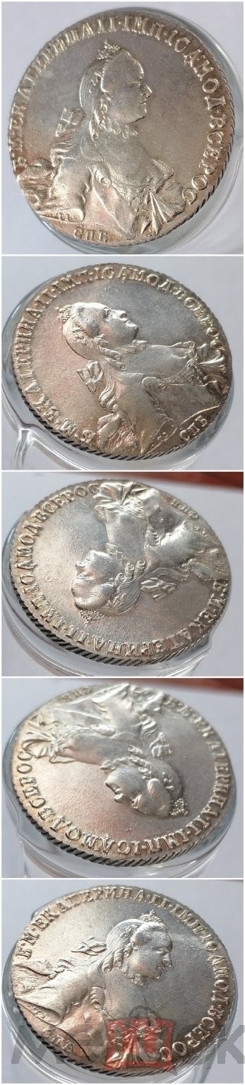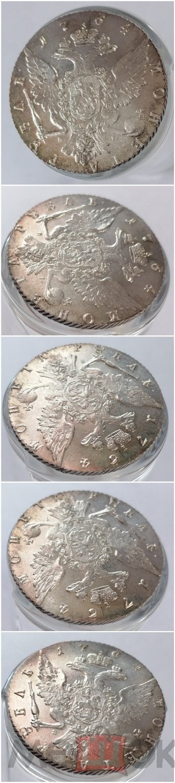 По клонам вычисляется. Чуть назад перелистайте по рублям 1764 г. в галерее подделок, там есть клон этой вещицы. .