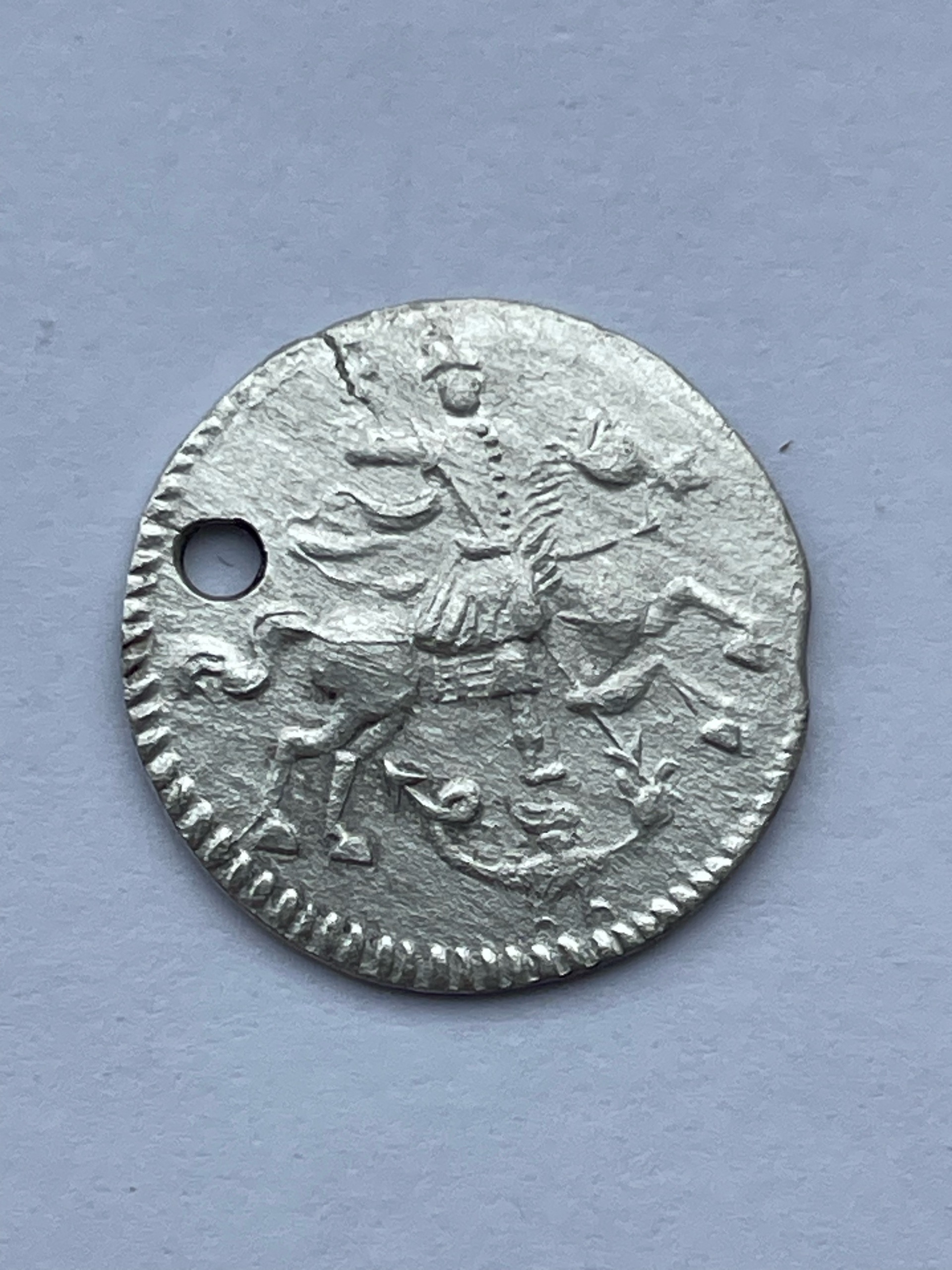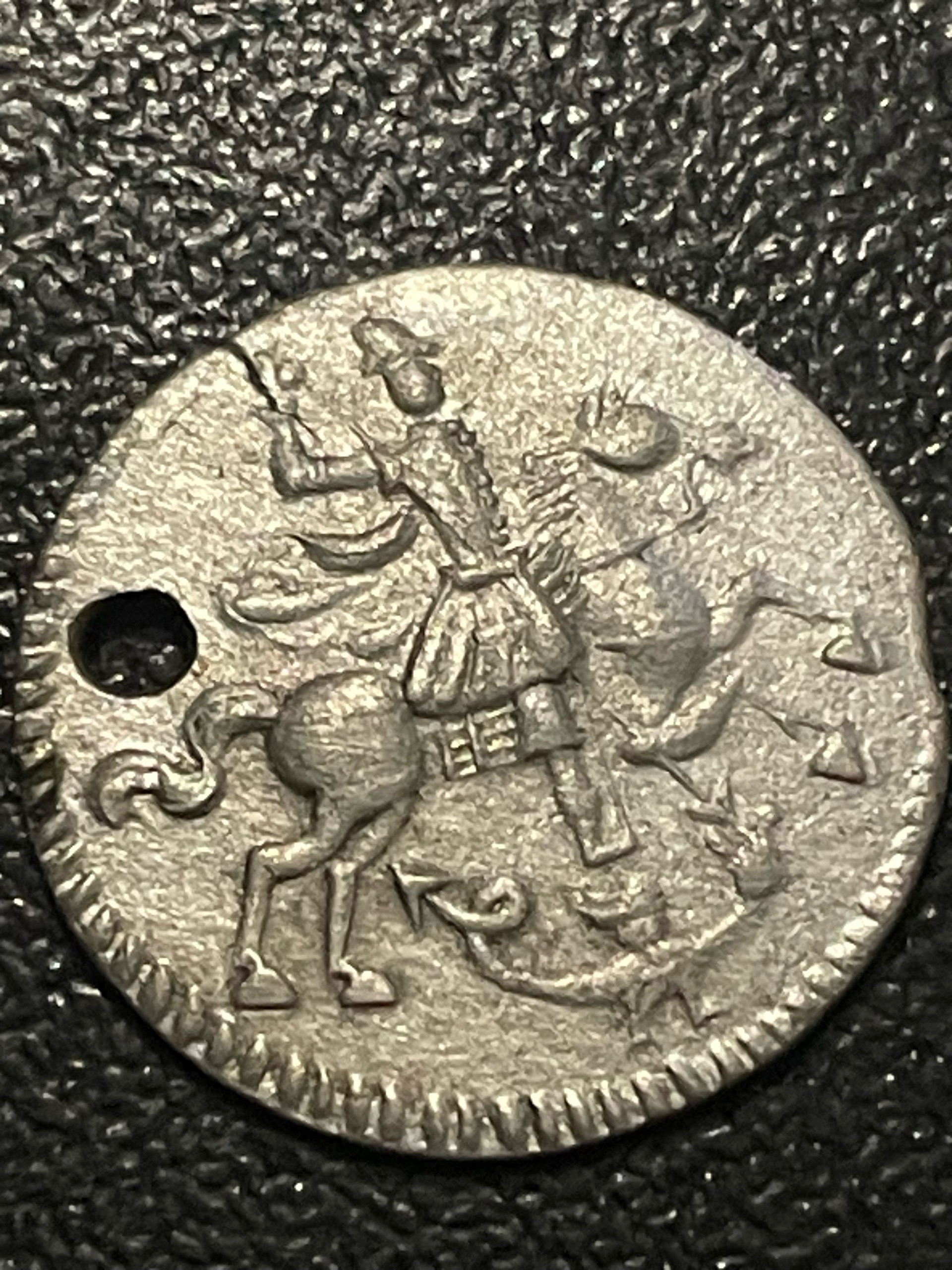 Медный алтын (3 копейки) 1718 года, отчеканенный в период правления Петра I. Монета относится к раннему периоду монетной реформы императора. Определить подлинность по предоставленной информации невозможно из-за отсутствия фотографий и экспертных комментариев.