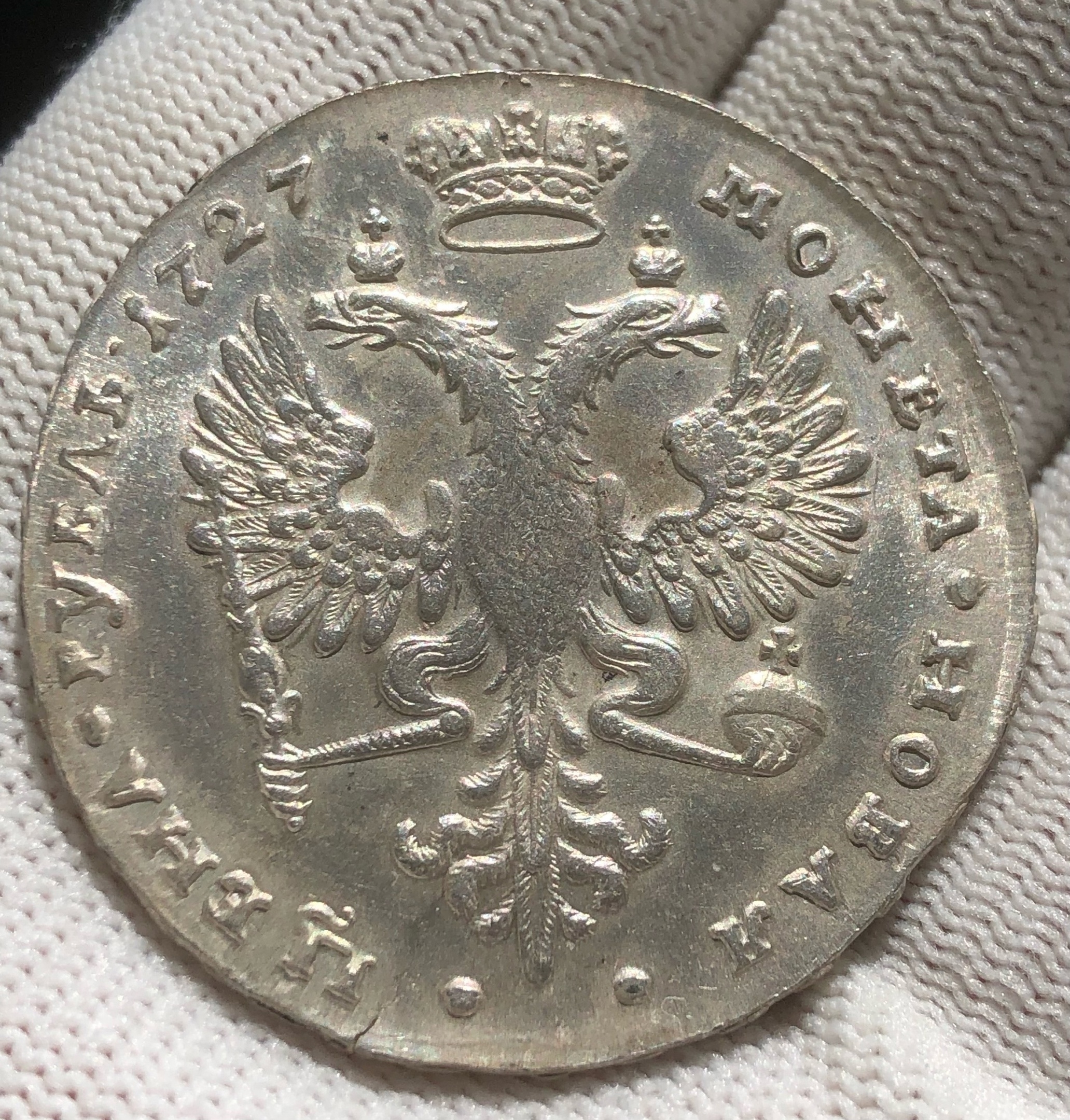 Рубль 1727 года Екатерины I — классическая подделка