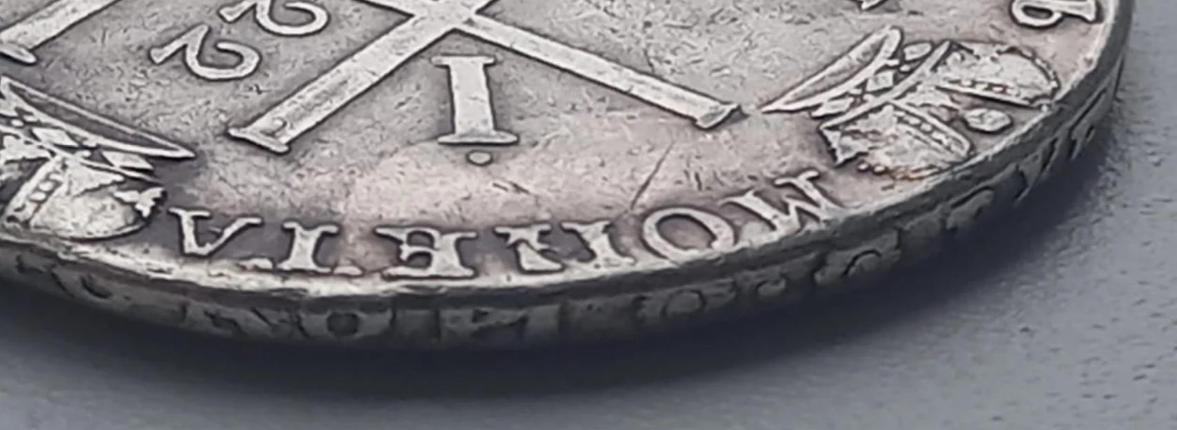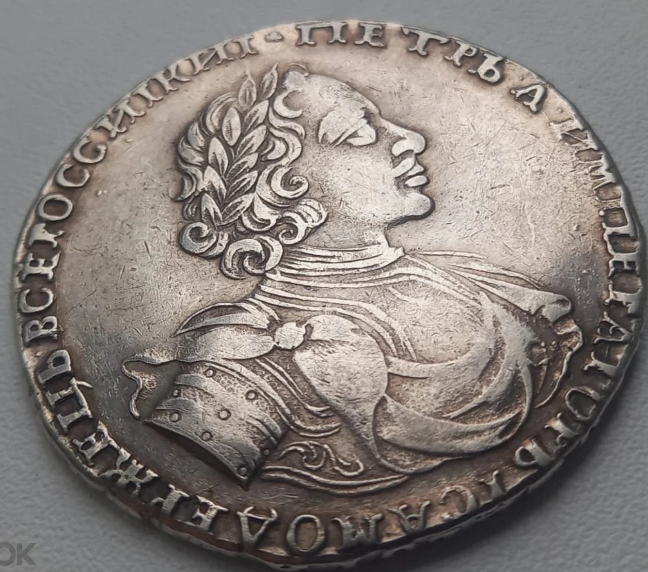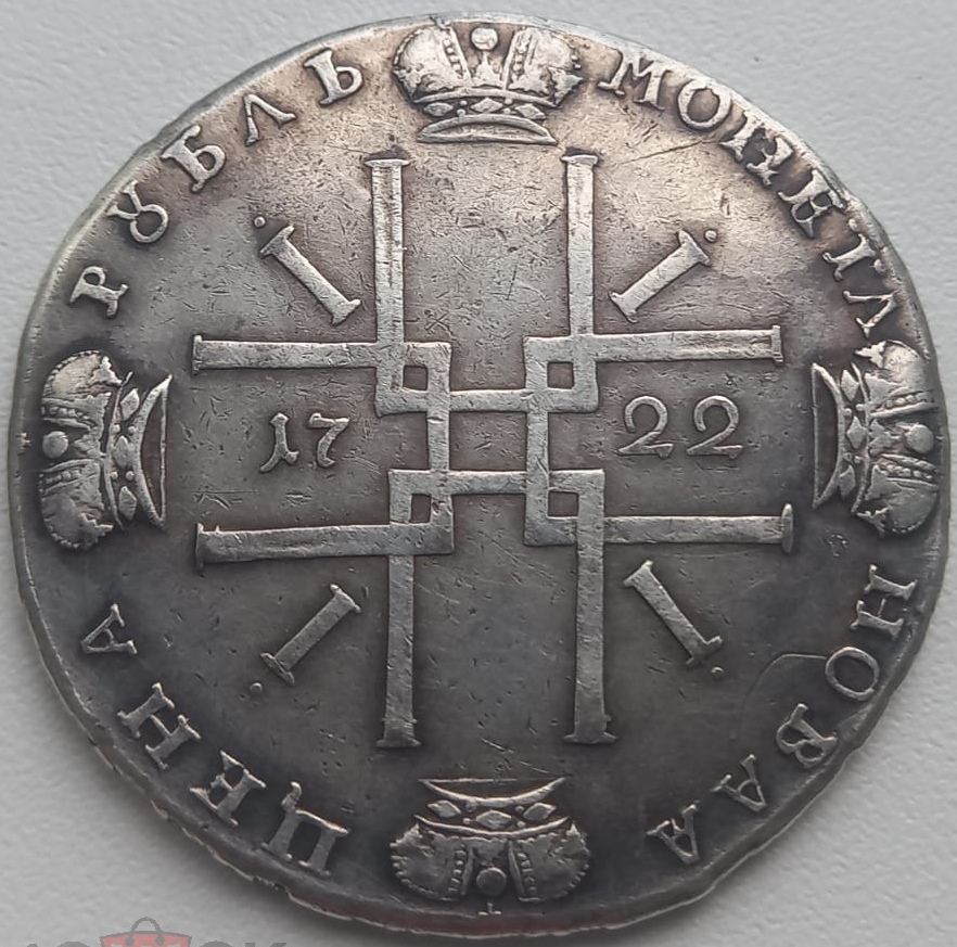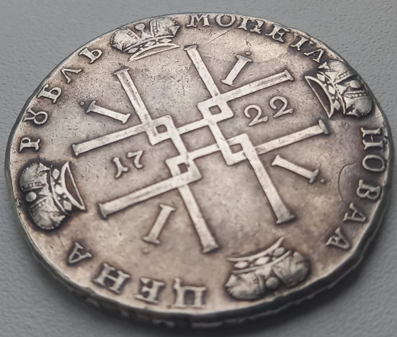 Монета представляет собой копию серебряного рубля 1722 года, отчеканенного в период правления Петра I. Оригинальные монеты этого типа имеют высокую коллекционную ценность и сложны в исполнении. Владелец поста прямо указал, что это копия, что подтверждает её неоригинальное происхождение.
