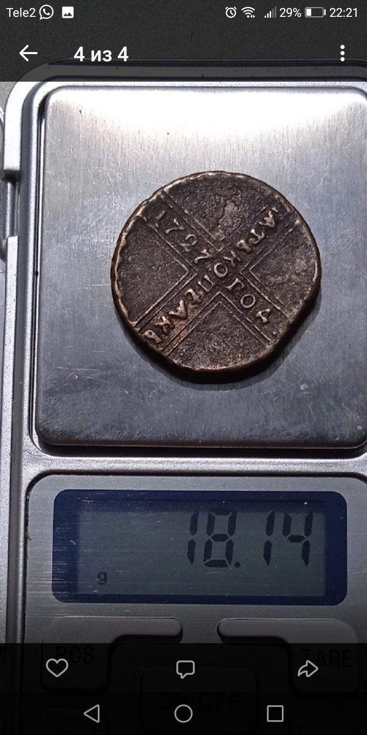5 копеек 1727 года — литая подделка времён Екатерины I