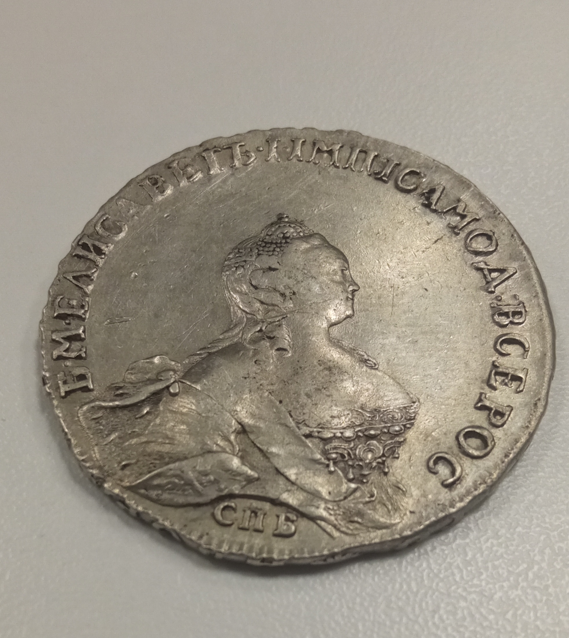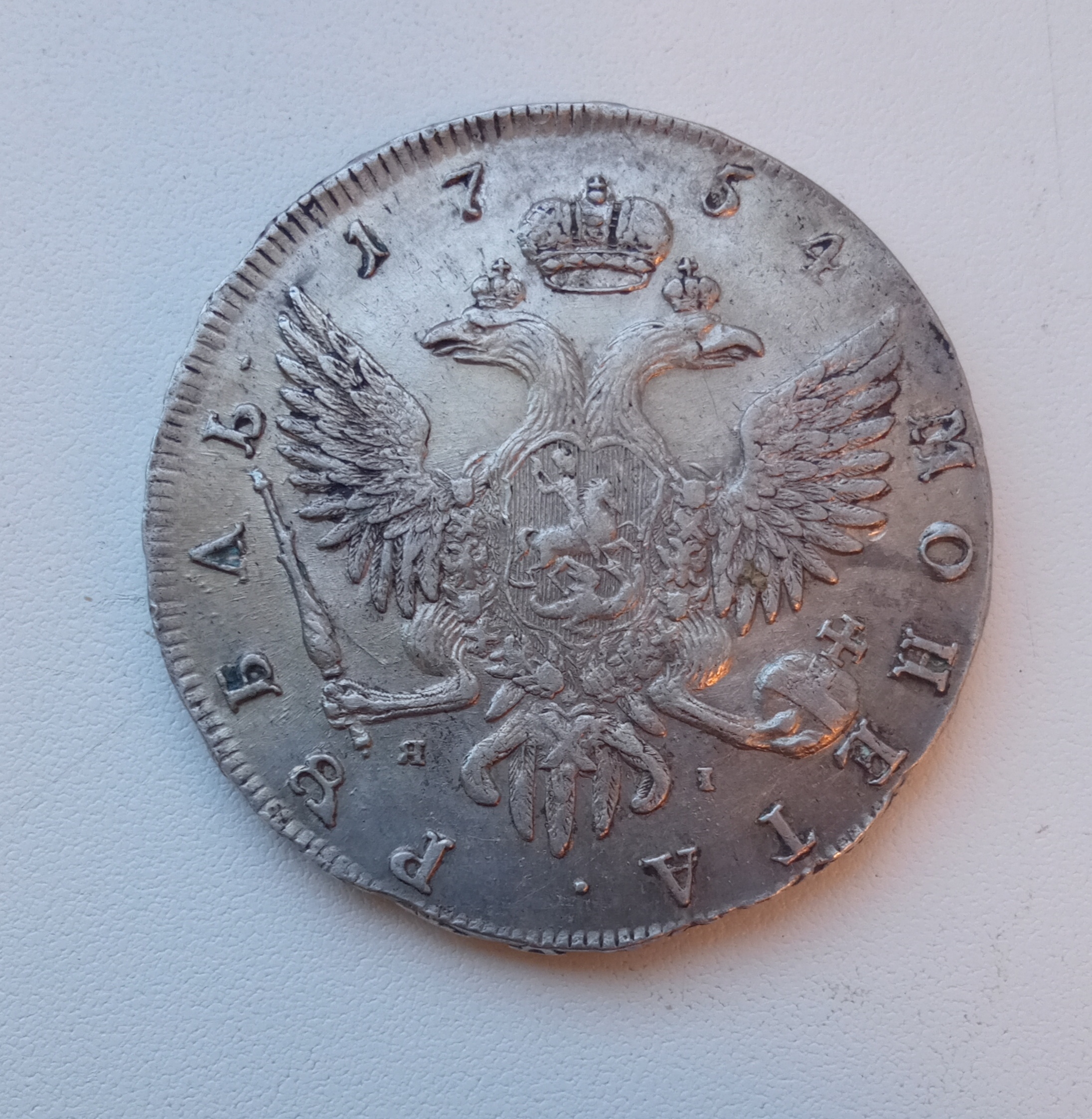 Рубль 1754 года Елизаветы Петровны — подлинная монета с дефектом
