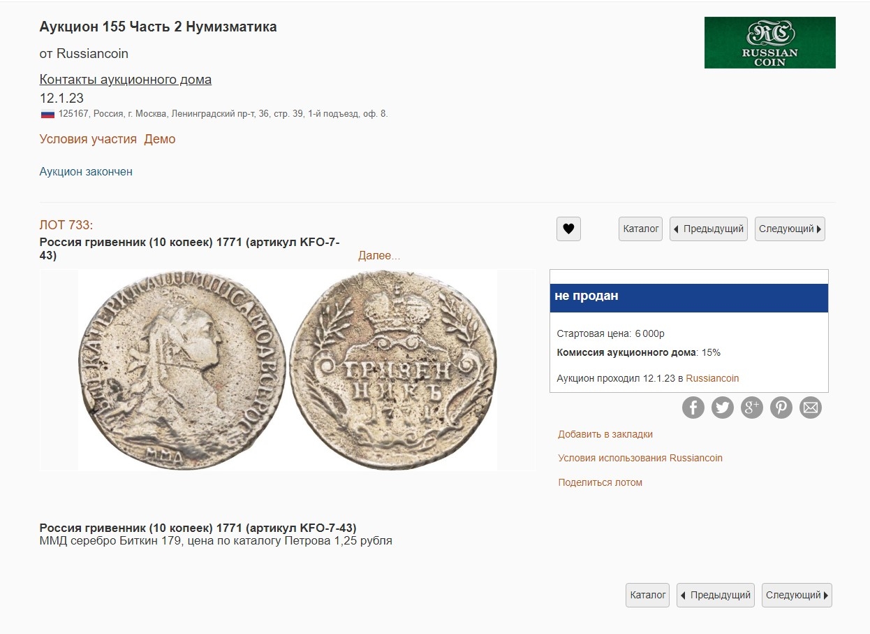 Гривенник 1771 года ММД — подделка или копия
