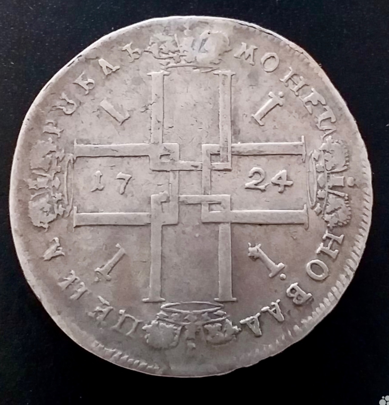 Рубль 1724 года Петра I — редкий «матрос» без инициалов медальера