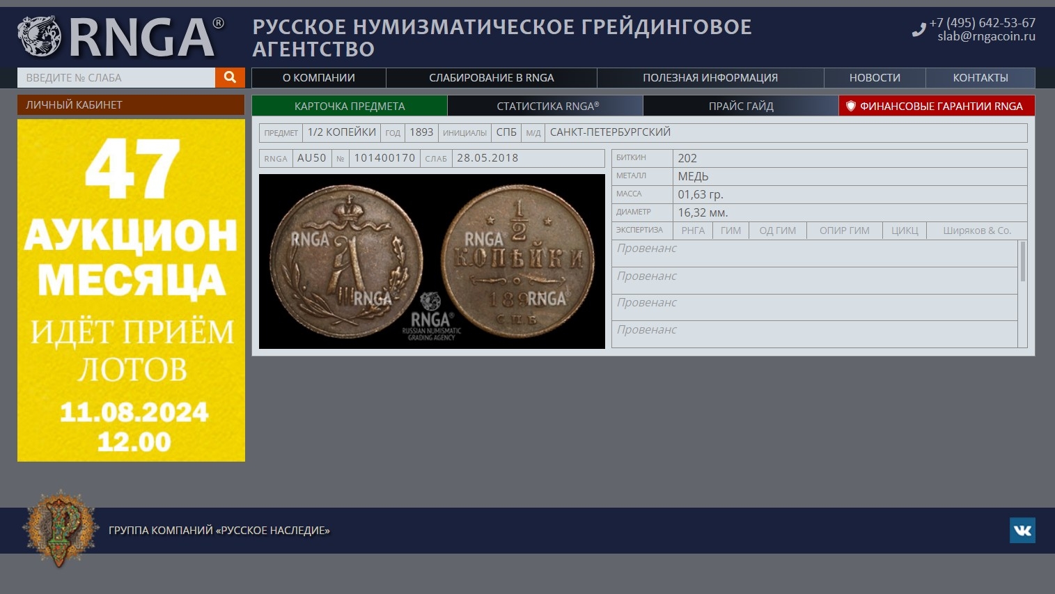 Судя по базе РНГА, эту монету закатали в слаб ещё в 2018 году. Что не оправдывает их, конечно, но сейчас, безусловно, там строже. Просто, регулярно пользуюсь именно их услугами. И про то, как с них якобы все"угорают", это байки - у РНГА (по крайней мере, пока) самый низкий процент подделок в их слабах, тем более, они единственные из отечественных грейдеров, кто даёт гарантию на подлинность монет в своих коробках. Уж не сочтите за рекламу. У тех же ННР подделок гораздо больше. Про "писюна" вообще говорить стыдно. Даже в новых слабах от ЦИКЦ уже есть подделки. По крайней мере, их экспертные заключения на фуфло даже здесь известны