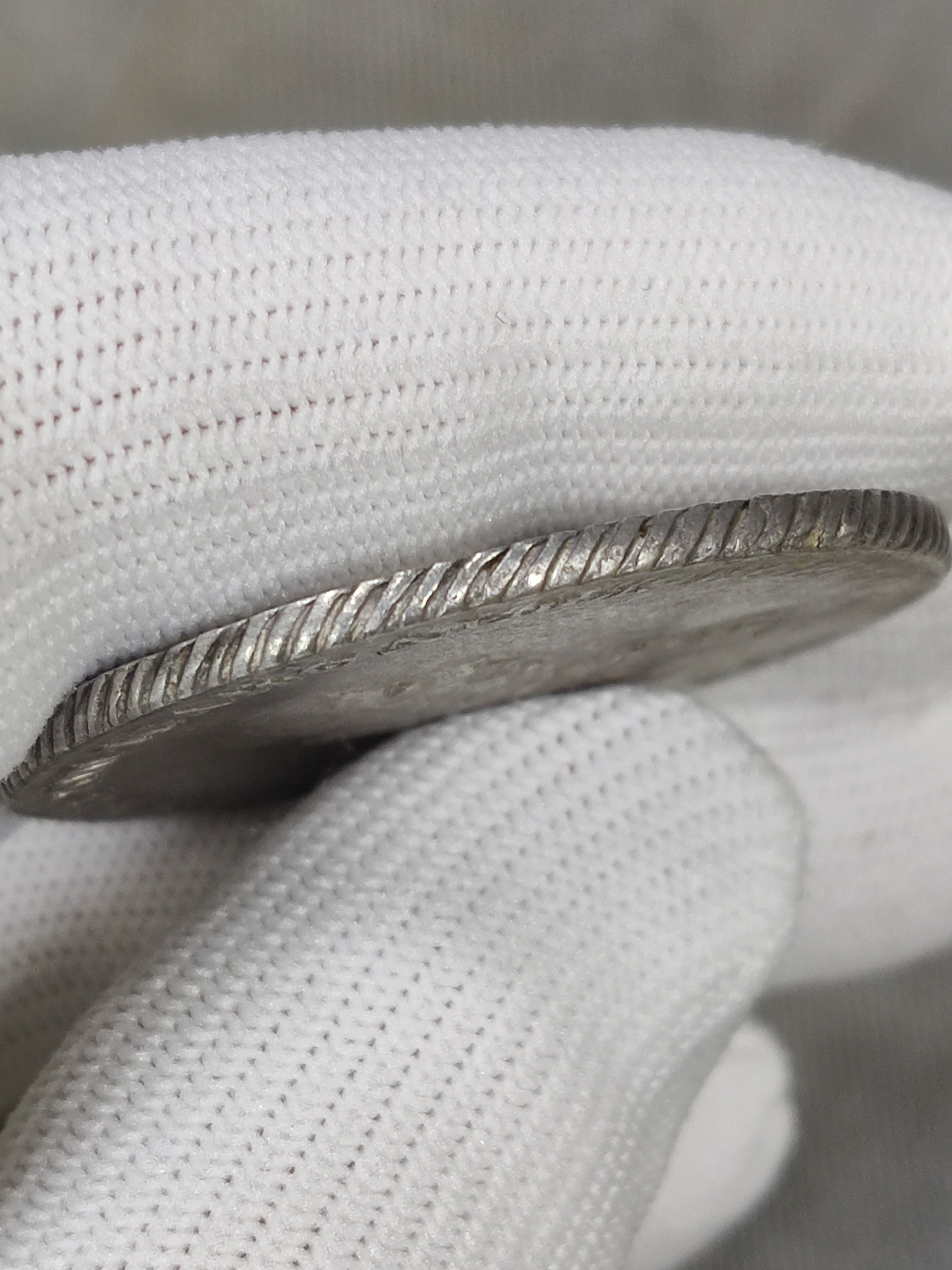 Подлинный рубль. Потяжки на буквах, слойки на груди и на 10.30 у гурта. Перегравировка одной буквы. Гурт правильный