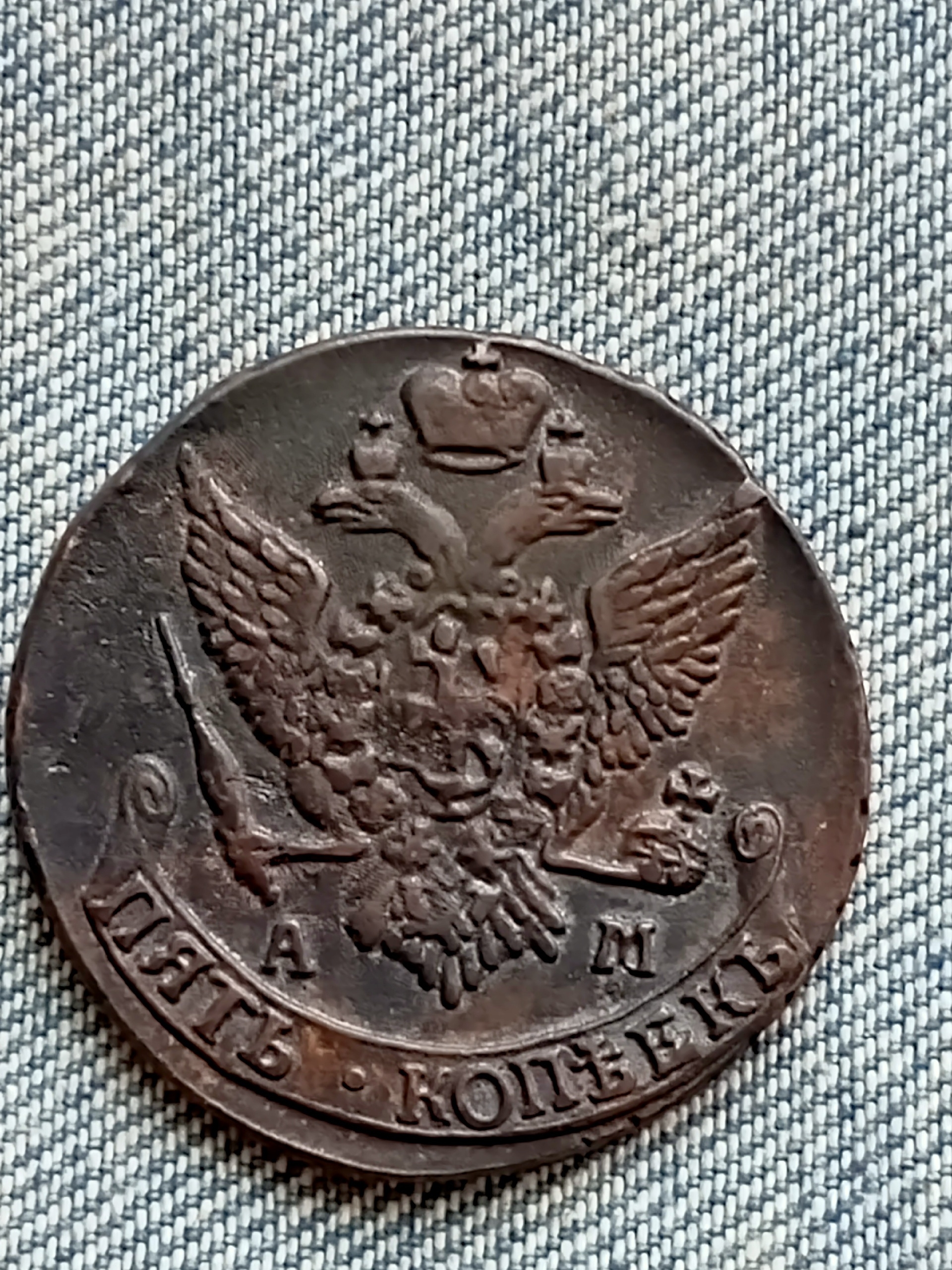 Монета номиналом 5 копеек 1792 года с вензелем Екатерины II (ЕМ) отчеканена на Екатеринбургском монетном дворе. Данный экземпляр, представленный в посте, является подделкой. Судя по единодушному мнению комментаторов, монета не обладает признаками подлинности, характерными для оригинальных медных плат того периода.