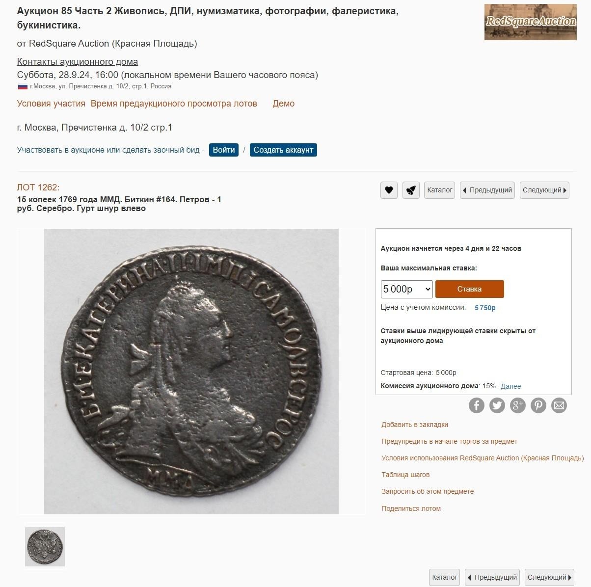 15 копеек 1769 года ММД — подделка или сувенир