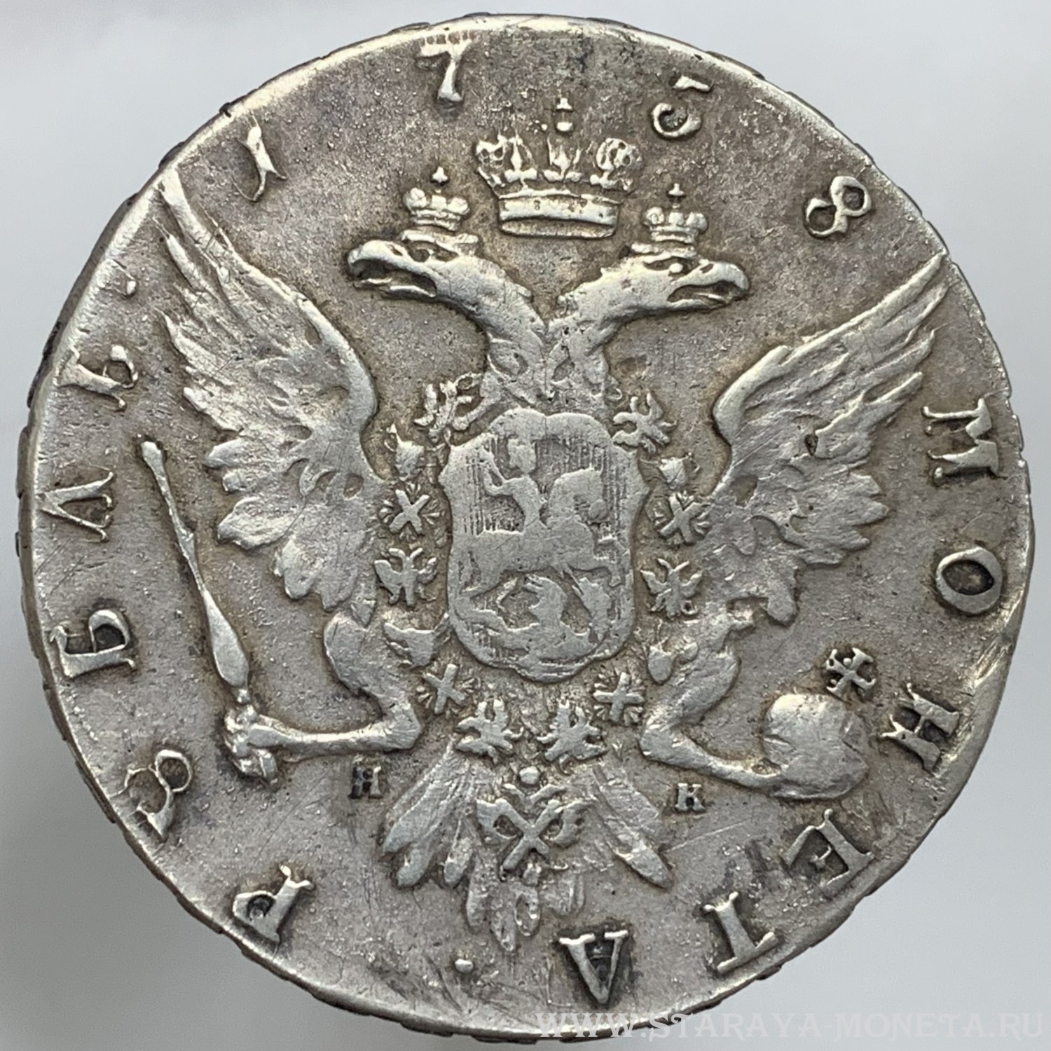 Рубль 1758 года СПБ НК — поддельная монета-фуфло