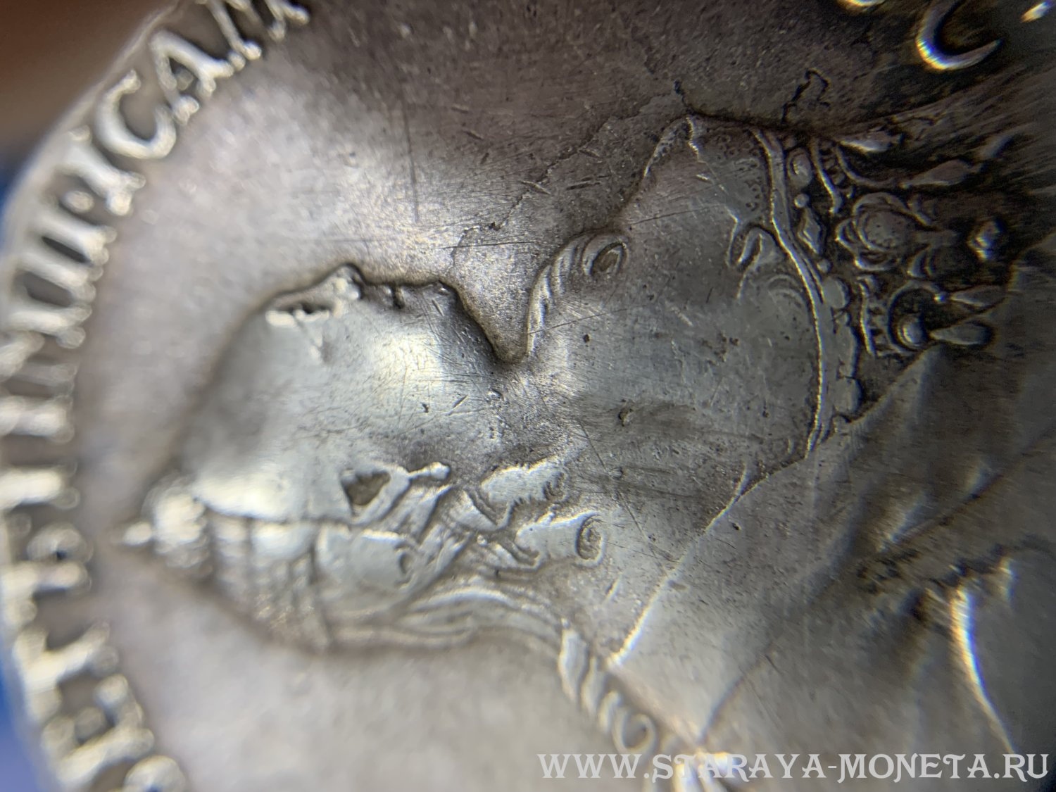 Монета представляет собой подделку серебряного рубля 1758 года, отчеканенного при императрице Елизавете Петровне на Санкт-Петербургском монетном дворе (обозначение «СПБ»). Автор поста изначально указал, что это подделка. В комментариях пользователи, используя нумизматический сленг, подтверждают этот вердикт, указывая на низкое качество исполнения копии.