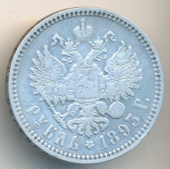 Серебряный рубль 1893 года Александра III — подлинная монета