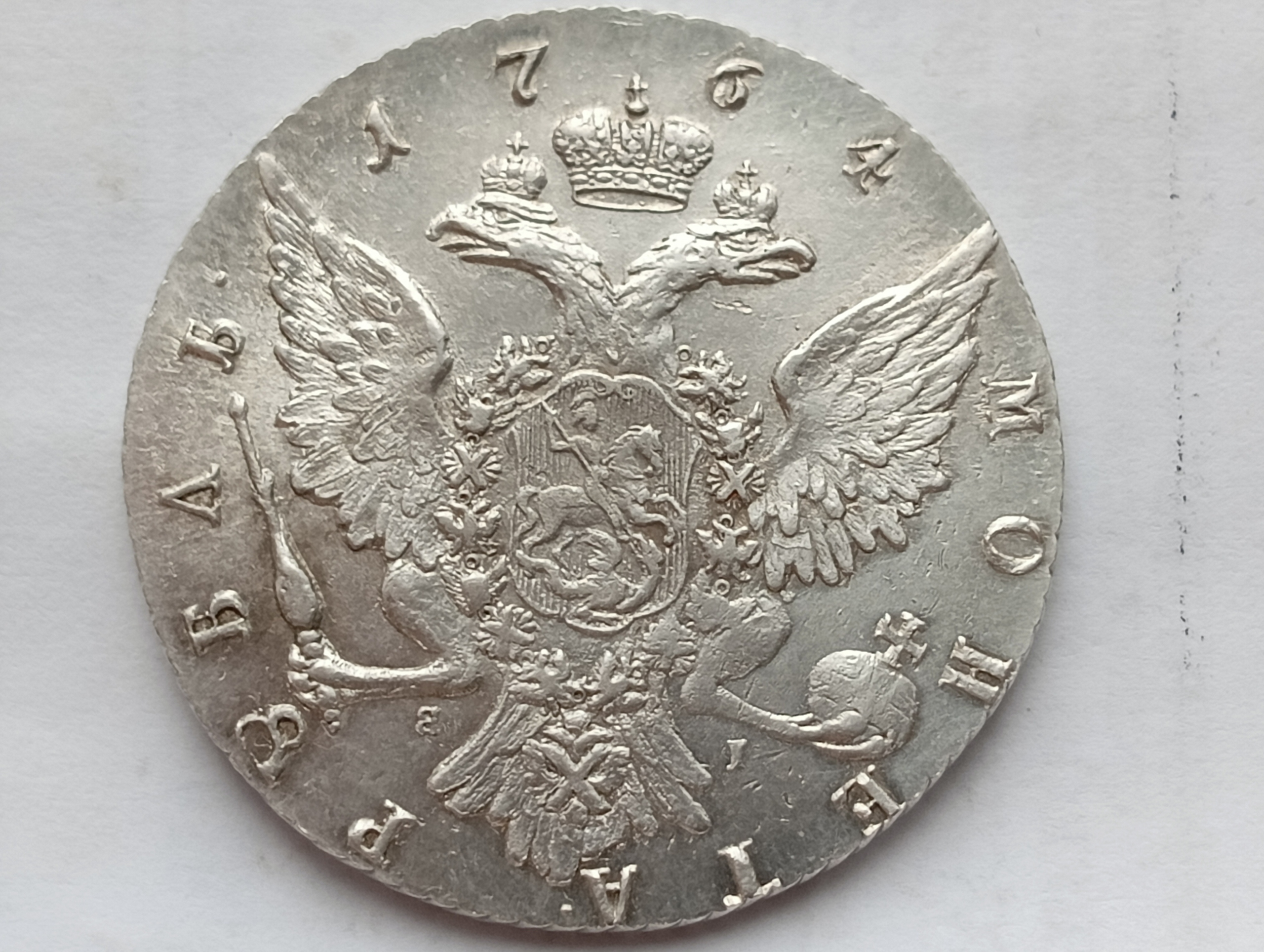 Рубль 1764 года СПБ ЯI — искусная современная копия