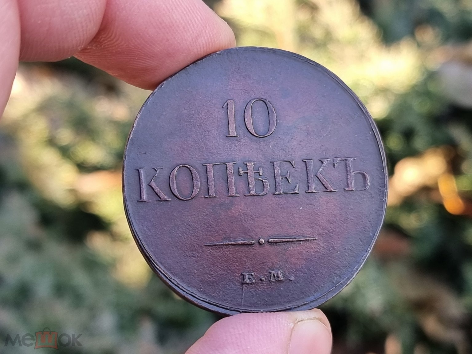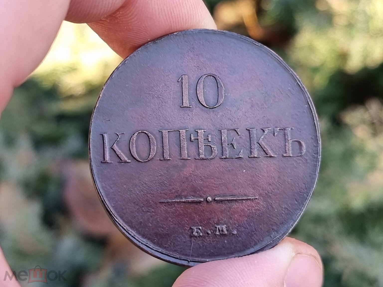 Монета номиналом 10 копеек периода правления Николая I. Оригинальные монеты этого типа чеканились на Санкт-Петербургском монетном дворе. Представленный экземпляр является откровенной подделкой, о чём прямо указано в описании поста.