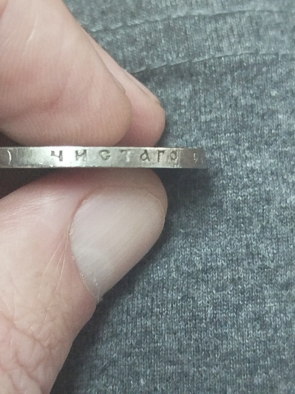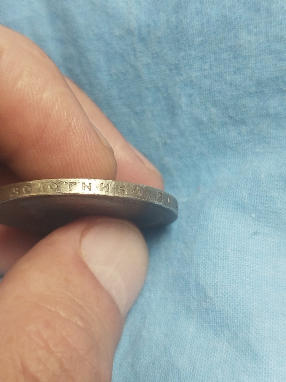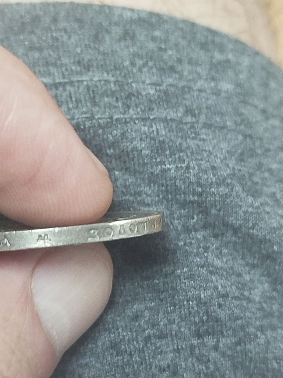 Надпись на гурте смешается так как чеканка в печатном кольце. Смещение - признак подлинности .
