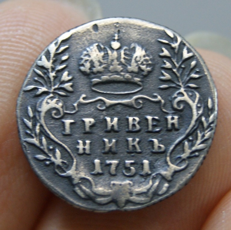 Гривенник 1751 года — поддельная монета Елизаветы Петровны